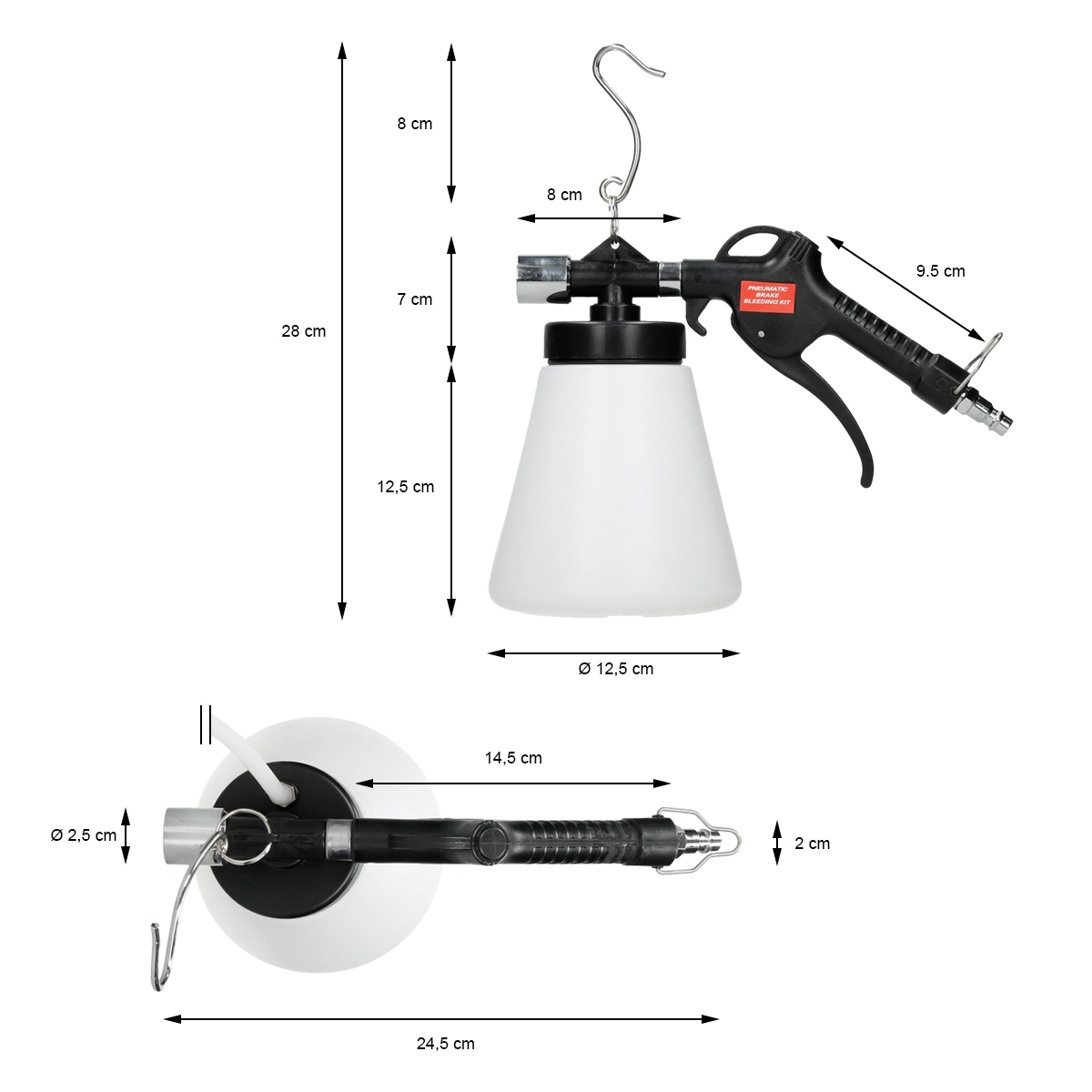Cet outil professionnel spécial automobile est parfaitement adapté à la purge des freins dans tous les foyers. Cet outil vous permet de purger le système de freinage de manière professionnelle, rapide et fiable. Le mamelon de 1/4 de pouce inclus dans la livraison peut être utilisé sur tous les modèles de véhicules courants conformément aux normes européennes.