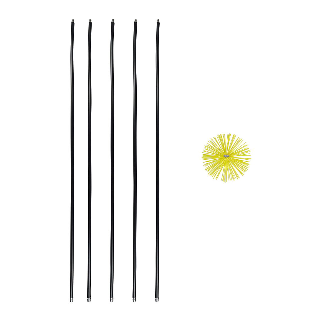 kit de ramonage : Cannes en polypropylène (PP) : Ø 17,5 mm. 5 cannes de 1,4 m (7 m). Hérisson synthétique avec anneau : Ø 200 mm. Filetage femelle standard : M12 x 175.
