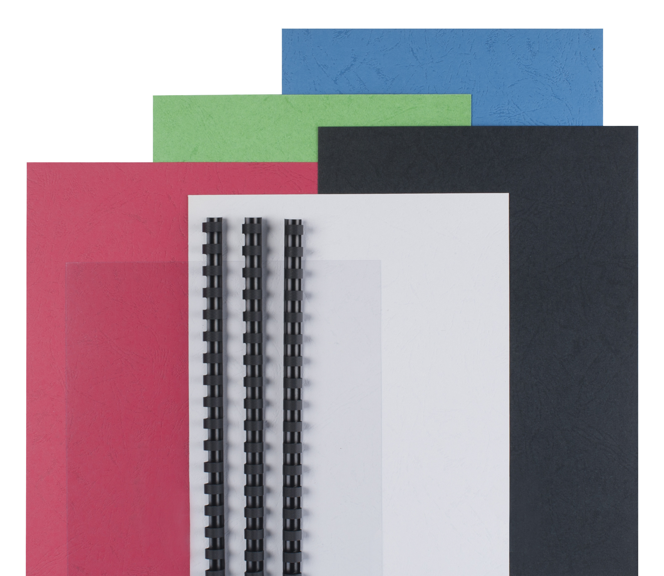 KIT DE RELIURE pour 25 dossiers ( 25 peignes , 25 plats de couvertures carton ass , 25 plats PVC )