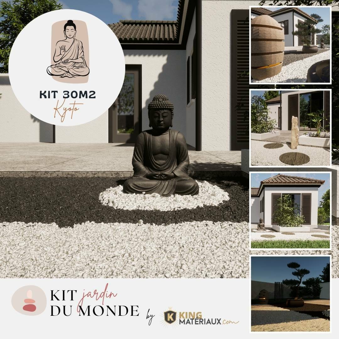 Vous rêvez d’un jardin zen à la maison ? King Matériaux, l’expert du gravier et de la décoration jardin vous propose son tout nouveau kit jardin zen : le Kyoto. Un jardin japonais livré à domicile sous 10 jours ouvrés en quelques clics seulement !