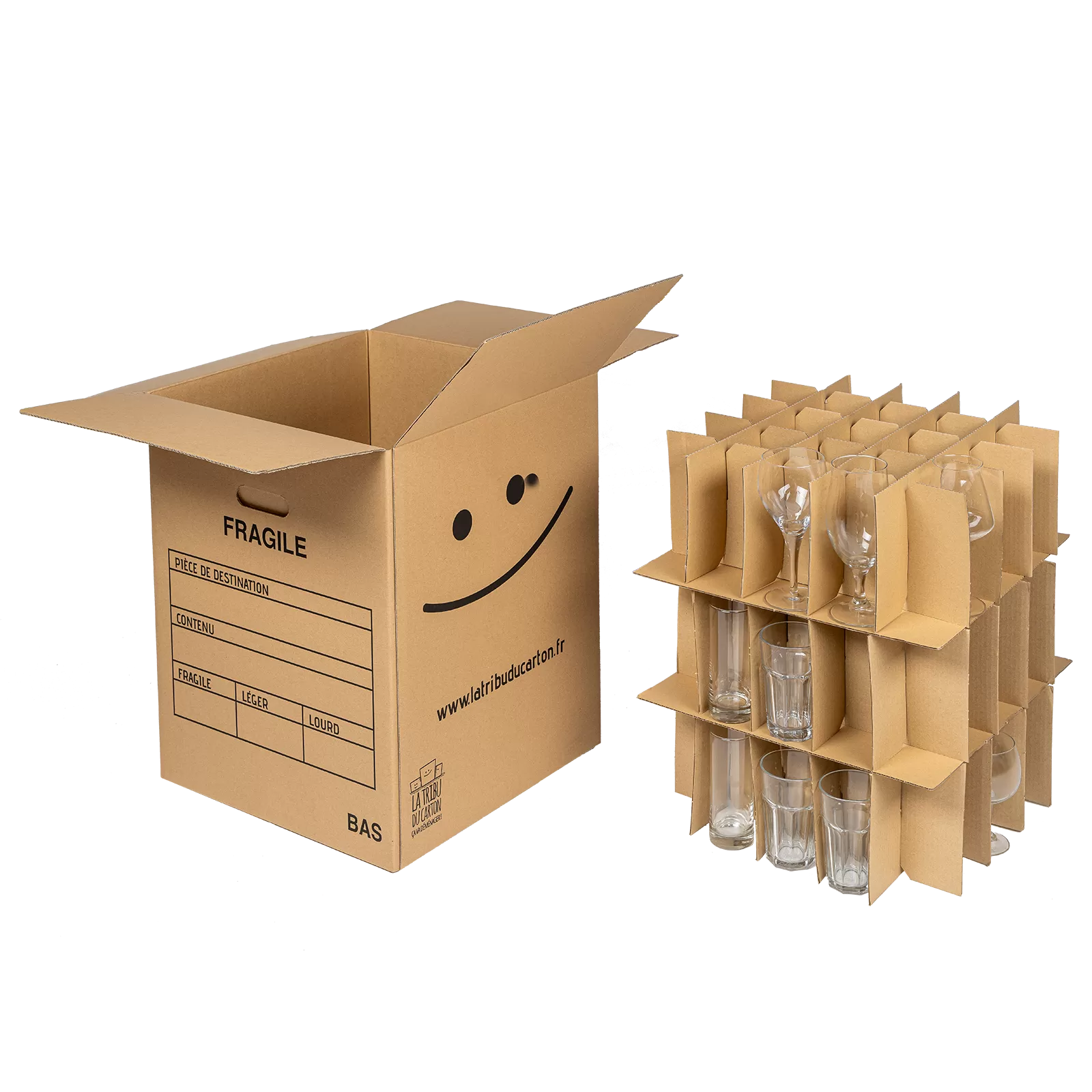1 carton de 75 verres L 45 cm x l 45 cm x H 56,5 cm