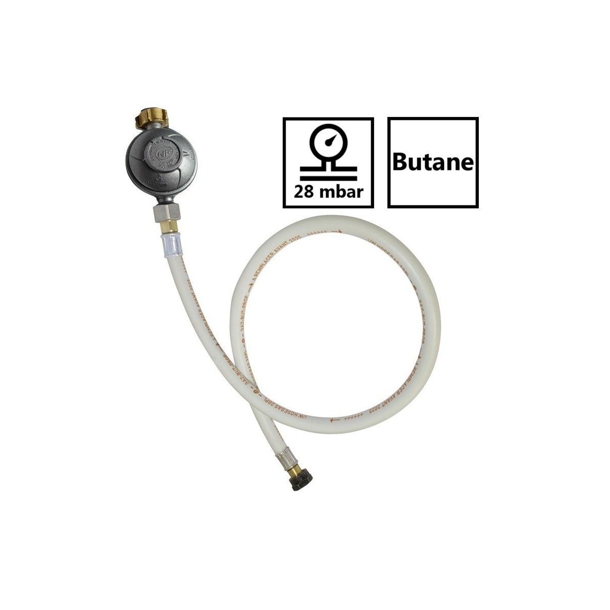 Kit détendeur 28 mbar vissable gaz Butane + Tuyau gaz flexible 1.50 m à embouts vissables