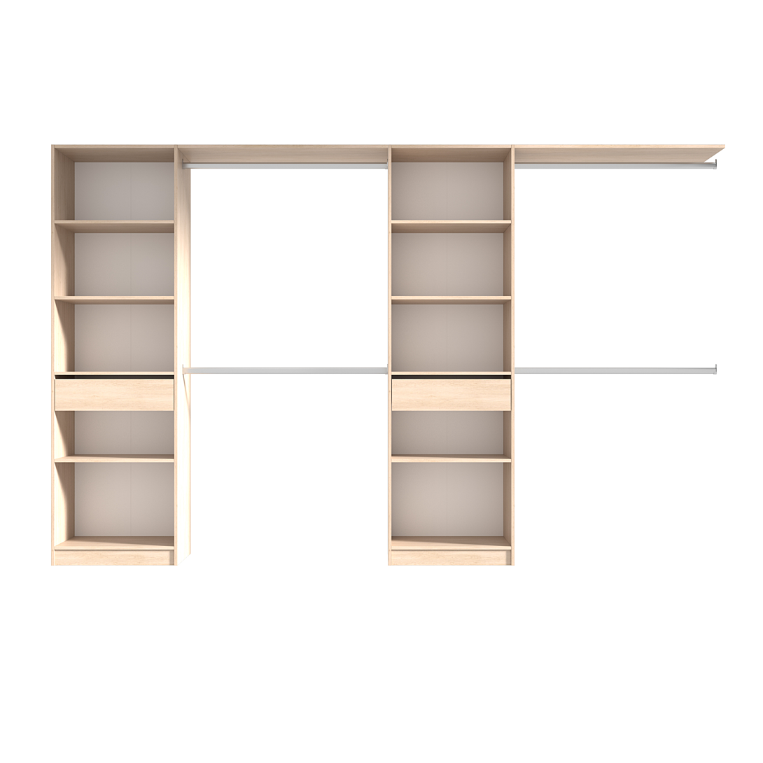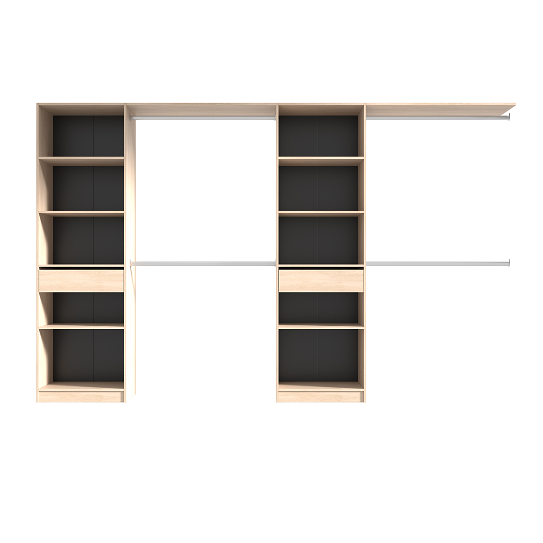 Tango est une solution d'aménagement composé de 2 colonnes lingères avec tiroir et de 2 tablettes et double penderie. Mix décor noir/chêne ou blanc/chêne très actuel, et sa grande capacité de rangement en font un incontournable.