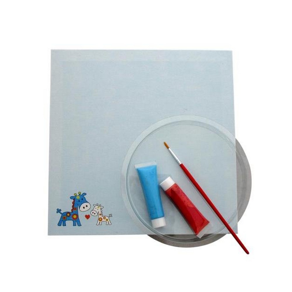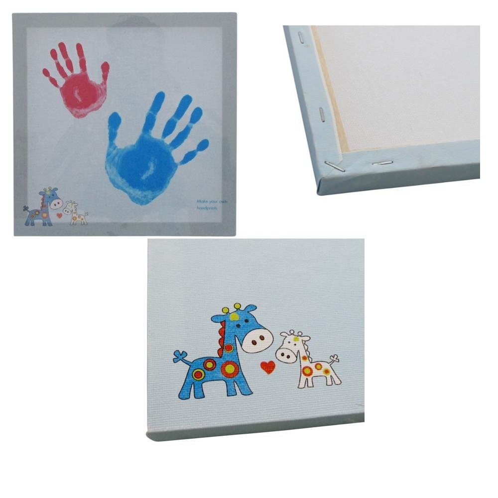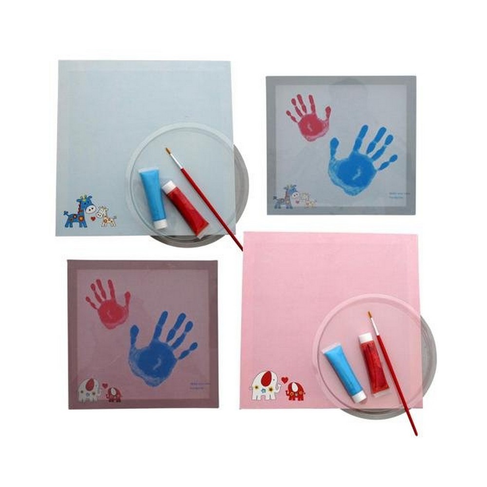 Immortalisez vos plus beaux moments grâce à ce kit pour empreintes Vous pourrez ainsi accrocher l'empreinte de la main ou du pied de votre bébé dans votre chambre. Souvenir inoubliable! Contient : 1 toile 25 x 25 cm 1 récipient 2 tubes de peinture ( 2 x 20 ml ) 1 pinceau Mode d'emploi: Mettre la peinture dans le récipient . Plongez la main complète de votre bébé dans la peinture afin que celle ci soit bien imprégnée. Mettre votre main sur la toile Laissez sécher pendant une nuit complète Laver vous les mains avec de l'eau et du savon, immédiatement après avoir terminé. Admirez votre oeuvre.