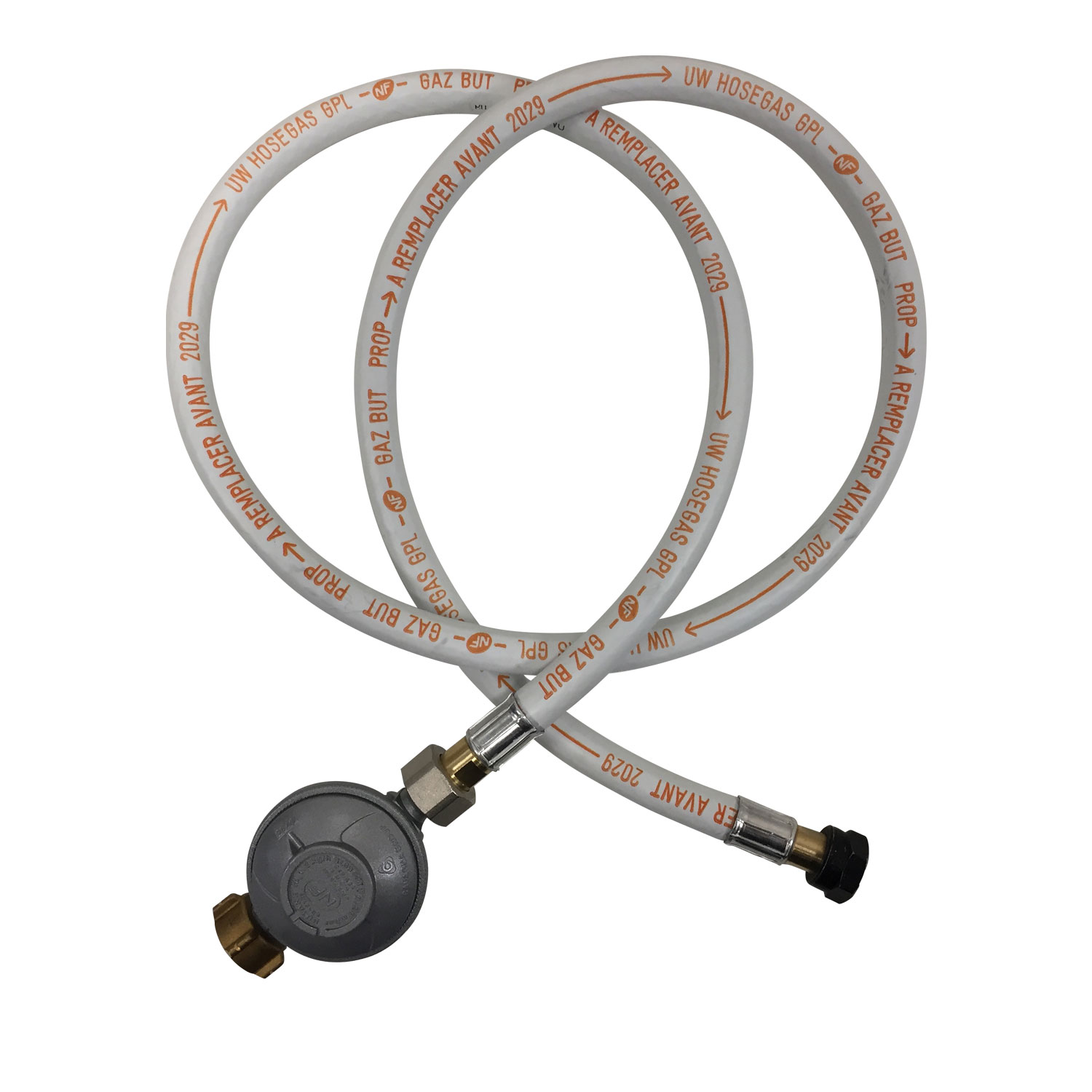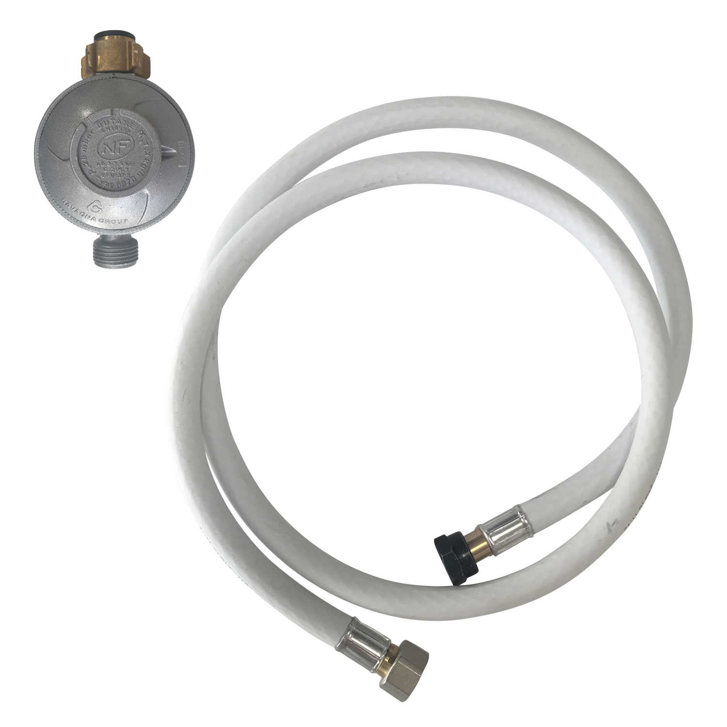 Kit flexible + détendeur Butane : ce kit complet comprenant un flexible d'1,5 mètres et un détendeur butane est parfait pour relier votre appareil domestique à sa bouteille de gaz. Vous pourrez par exemple l'utiliser votre barbecue ou plancha au gaz.
