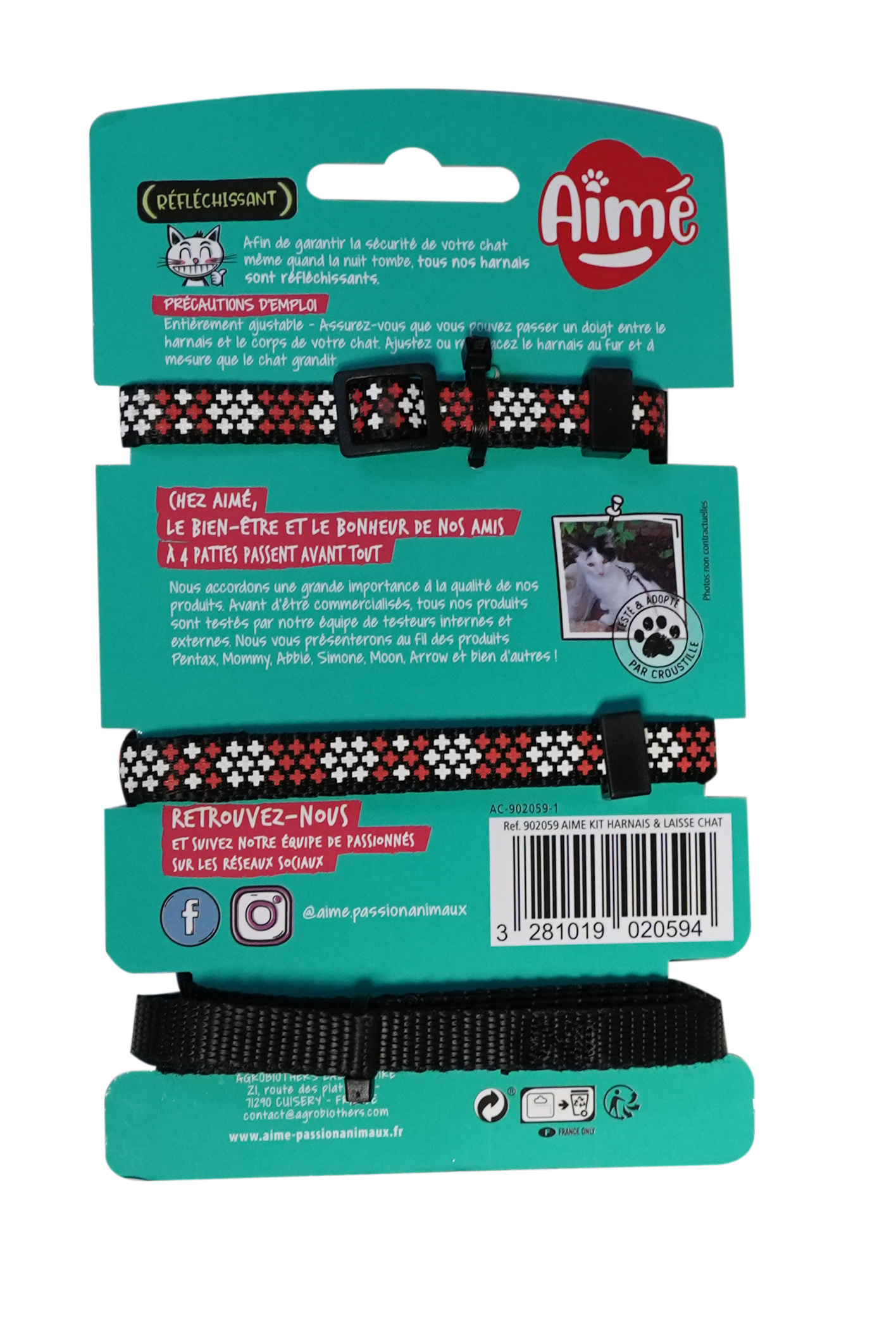 Ce kit harnais et laisse AIMÉ en nylon non toxique est idéal pour les chats. Avec un design élégant et une taille ajustable de 18 a 28 cm, il assure confort et sécurité grâce à sa boucle anti-étranglement. Facile à entretenir, il est parfait pour les promenades quotidiennes.