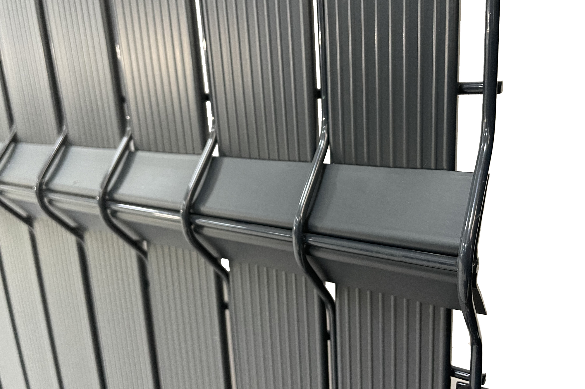 Nos kits de lames PVC pour extérieur sont compatibles avec les grillages rigides standards de maille largeur 55 mm.