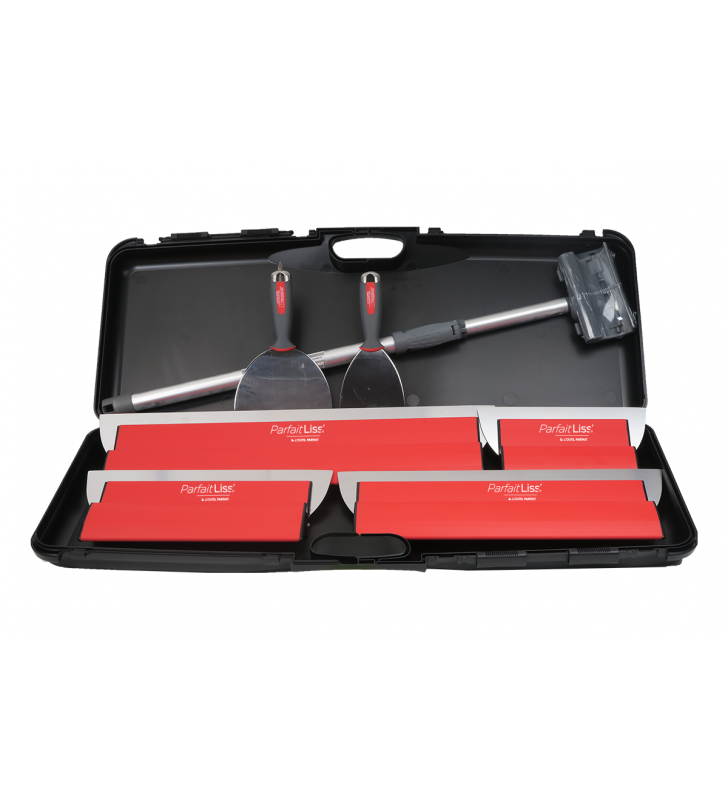Kit d'outil Parfait Liss' spécial plaquiste : tous les outils pour parfaitement appliquer et lisser vos enduits et vos bandes placo dans une valise de rangement rigide