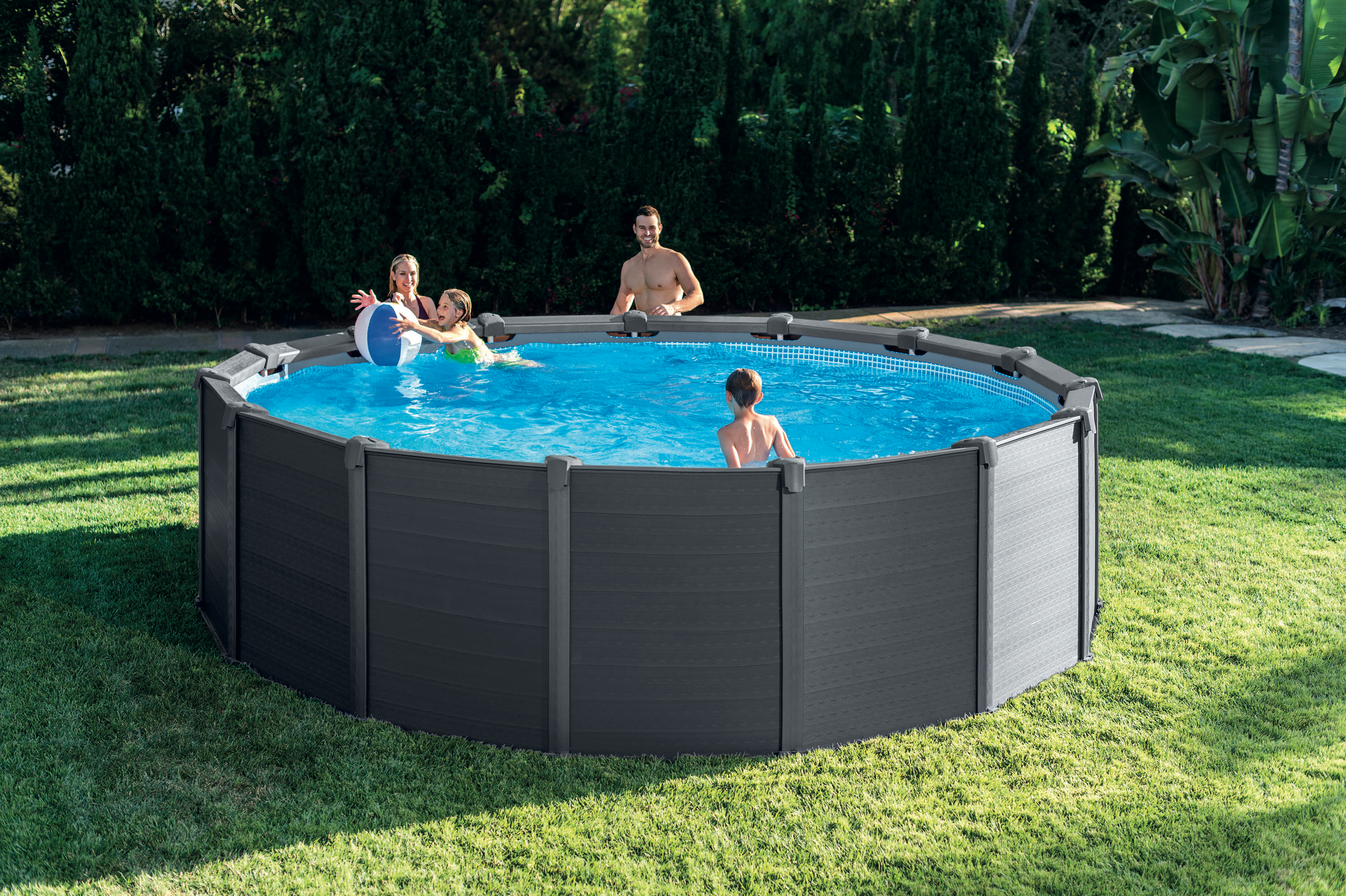 La piscine tubulaire Graphite INTEX Ø x h : 4,78 x 1,24 m appartient à une nouvelle génération de piscines dotées d’un habillage design en PVC. Grâce à sa structure aussi robuste que tendance, cette piscine se monte en moins de 2 heures sans outils. Elle sera parfaite pour accueillir famille et amis tout l'été. Pour vous permettre de profiter pleinement de votre bassin, un kit complet d’accessoires est fourni.