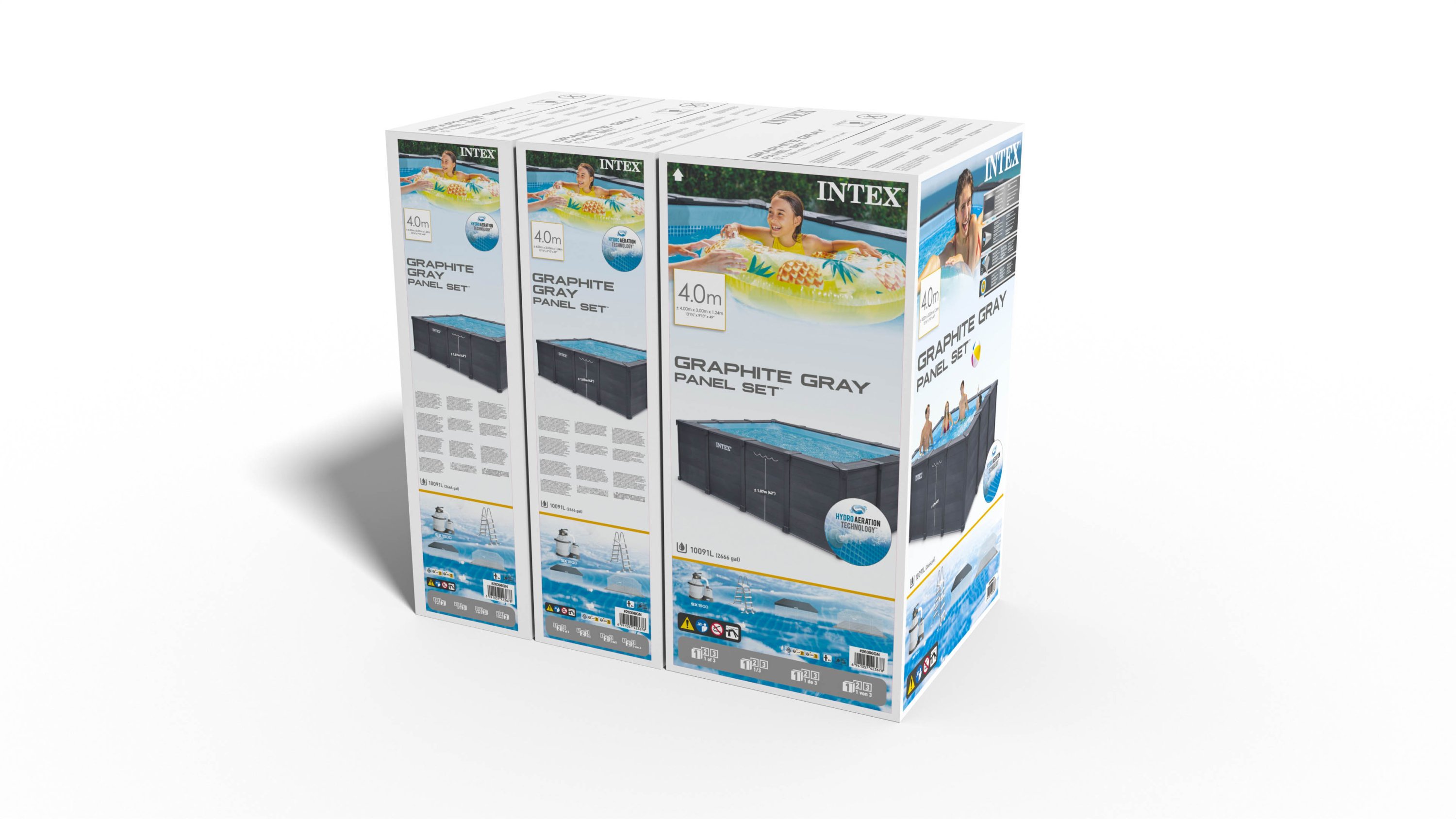 Avec la piscine Graphite Intex rectangulaire, profitez pleinement d’un été les pieds dans l’eau. Très tendance grâce à son habillage PVC gris anthracite et sa forme rectangulaire, cette piscine deviendra l’élément indispensable de vos journées ensoleillées. Cette structure apporte à votre piscine une stabilité incomparable, une manipulation plus facile et son liner triple épaisseur une résistance unique pouvant supporter des heures d’amusement. Grande surface de nage adaptée à toute la famille. Coloris : Gris anthracite Plus produit : Design élégant Forme : Rectangulaire Type de structure : Tubulaire Matière : PVC/Acier Dimensions approximatives : L x l x h : 4,00 x 3,00 x 1,24 m Dimensions au sol : L x l : 4,00 x 3,00 m Dimensions surface de nage : L x l : 3,66 x 2,62 m Hauteur d'eau : 1,07 m Temps de montage : 120 minutes Capacité : 10,1 m³ Filtre à sable : 4 m³/h Hydroaération : permet le bon fonctionnement de la filtration Echelle de sécurité avec marches amovibles et plateforme Bâche et tapis de sol Taille carton : P x l x h : 130,50 x 74,90 x 125,40 m Poids carton : 211,97 kg Poids produit : 211 kg Garantie 2ans
