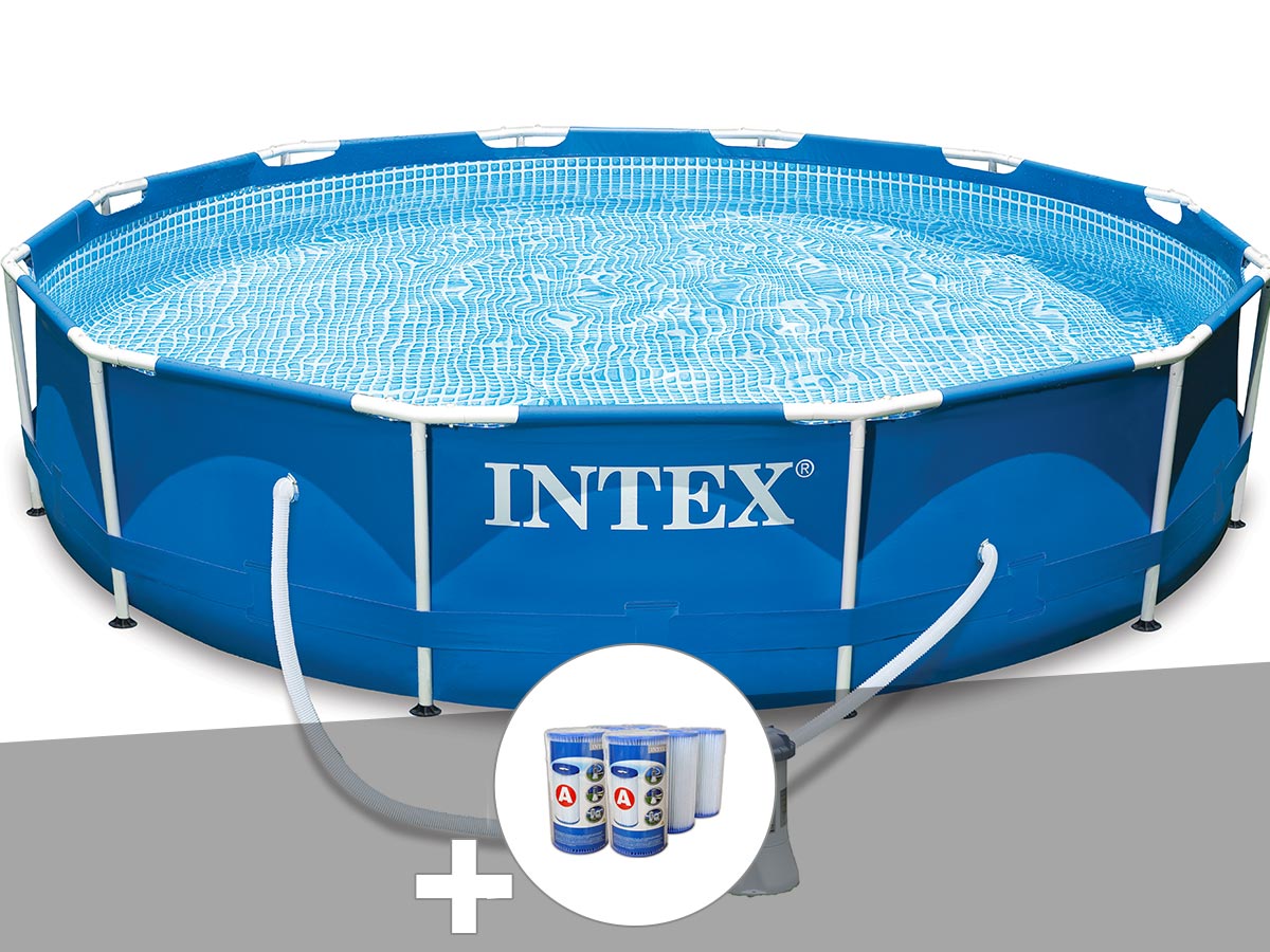 Kit piscine tubulaire Intex Metal Frame ronde 3,66 x 0,76 m + 6 cartouches de filtration