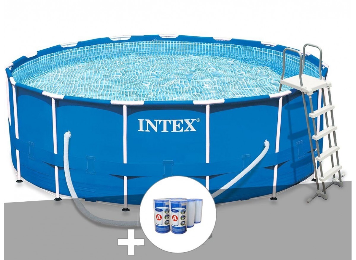 Kit piscine tubulaire Intex Metal Frame ronde 4,57 x 1,22 m + 6 cartouches de filtration
