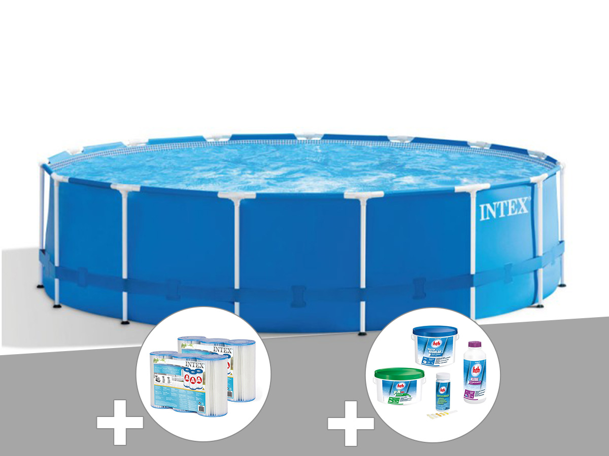 Kit piscine tubulaire Intex Metal Frame ronde 4,57 x 1,22 m + 6 cartouches de filtration + Kit de traitem