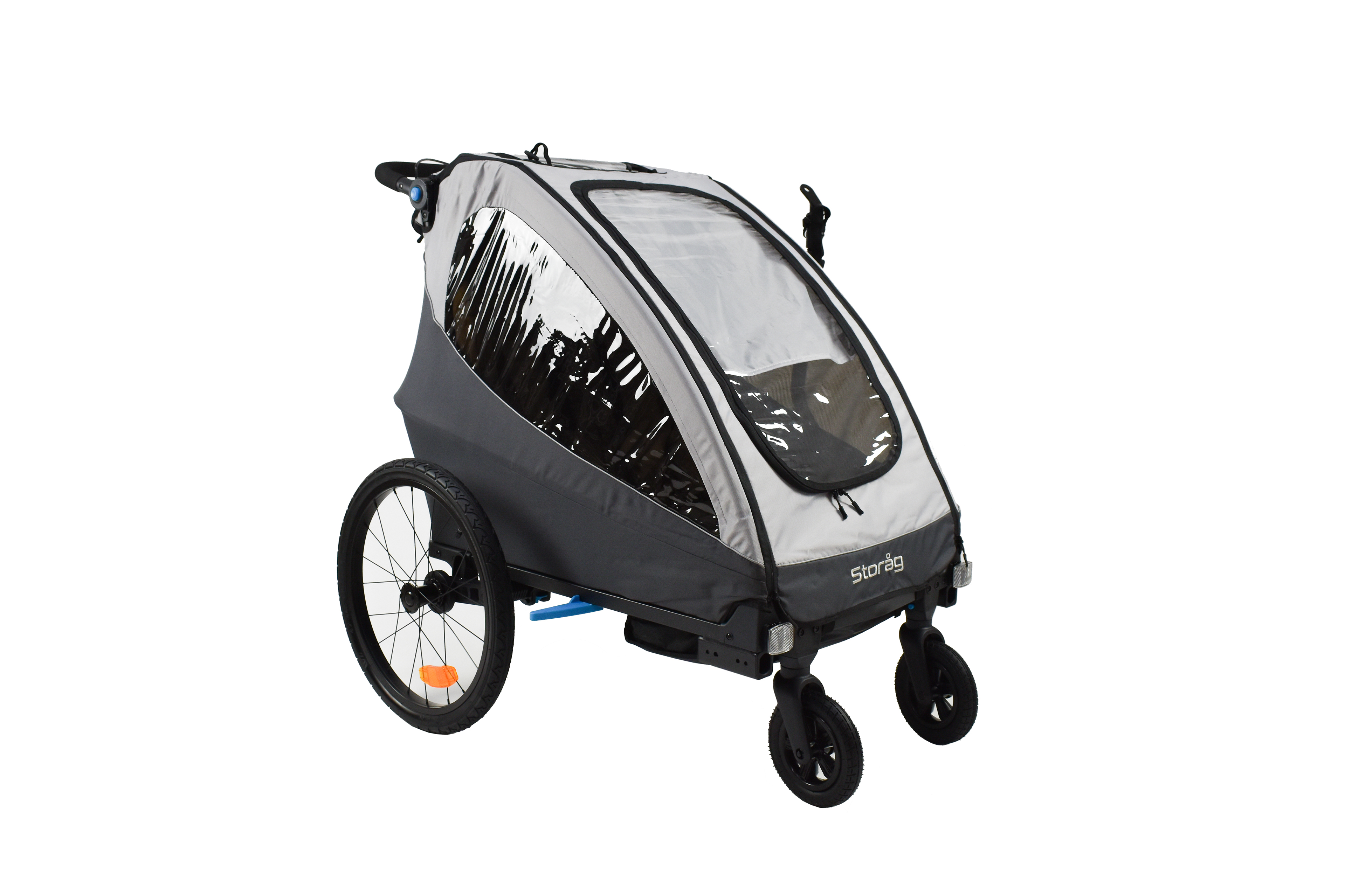 Ce kit poussette additionnel pour remorque velo enfant Storag permet une conversion en poussette en quelques instants. idéal lors de balades.