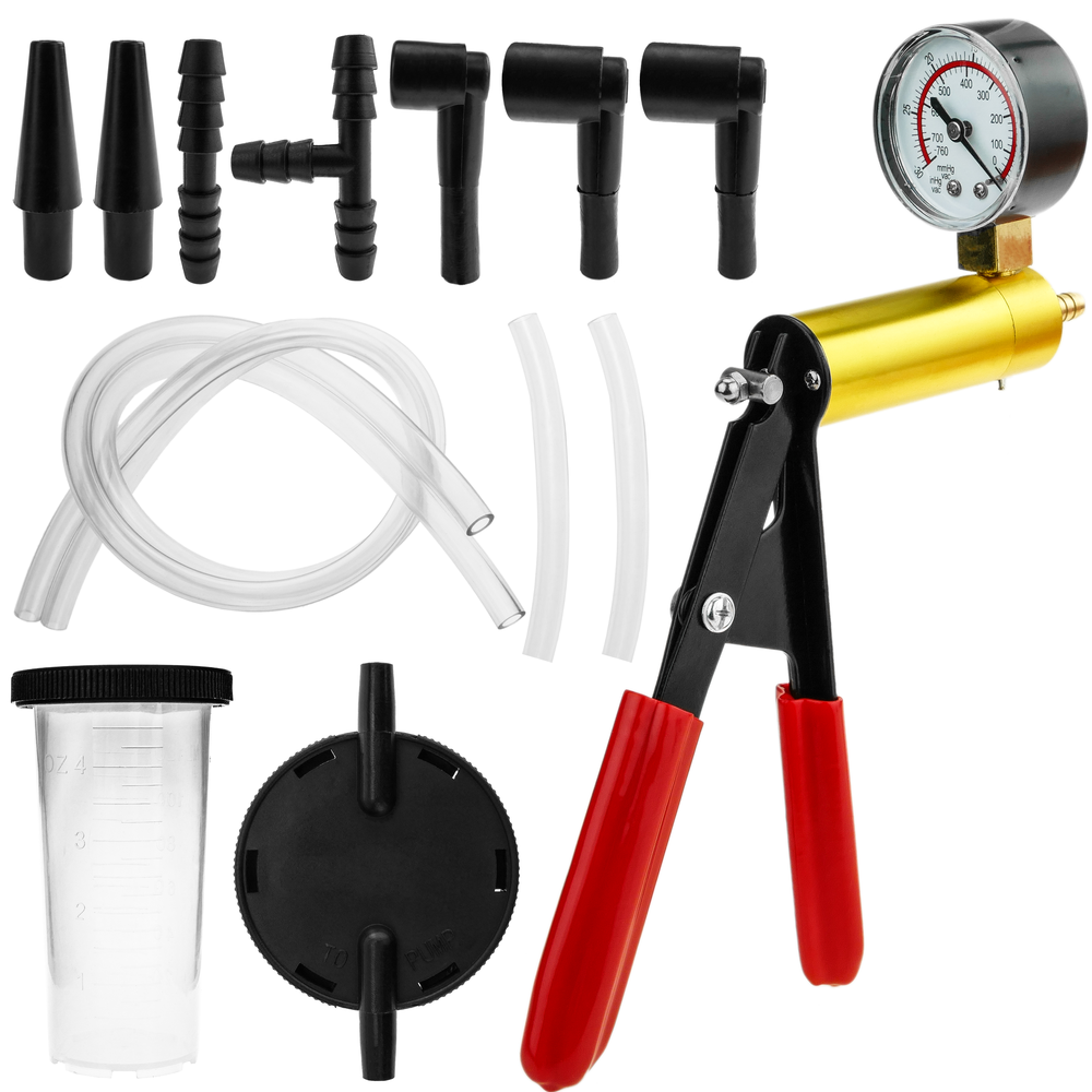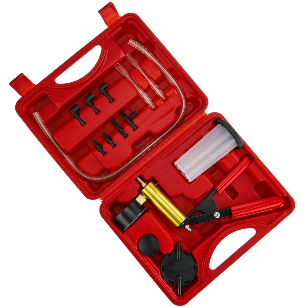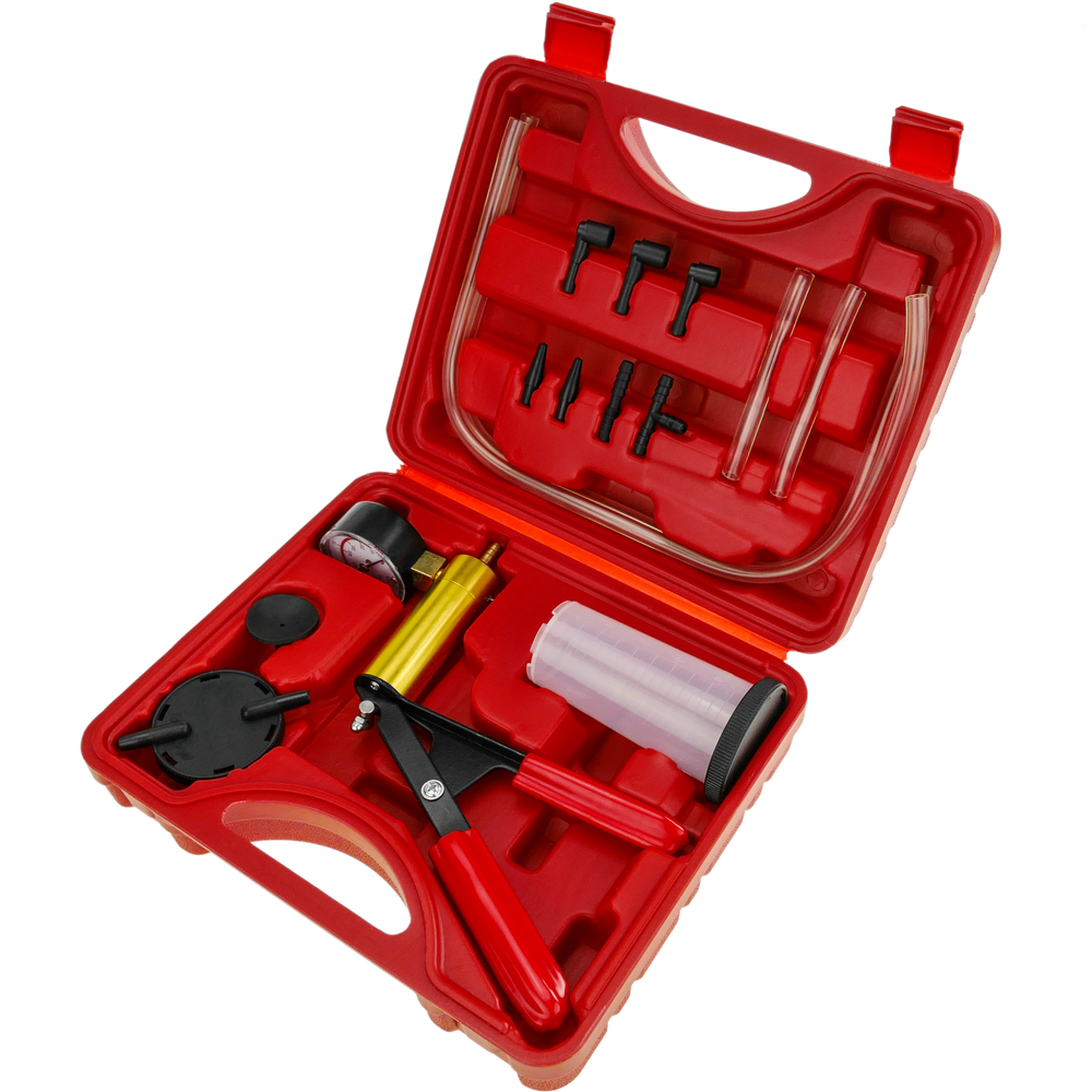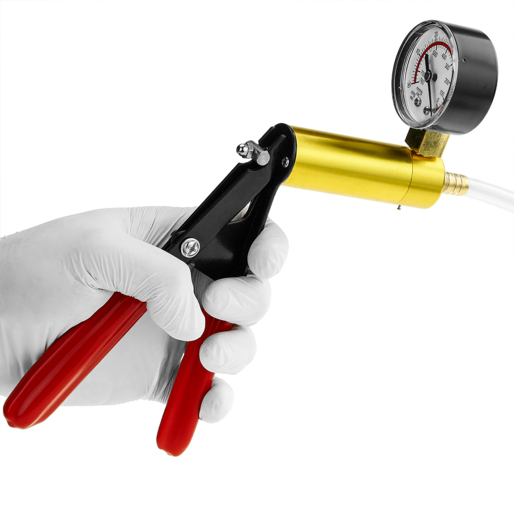Kit purgeur frein pour voiture et moto. Pompe à vide tenu dans la main. Purge le liquide de frein