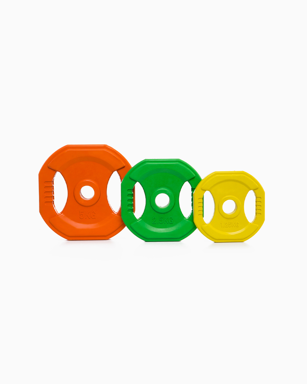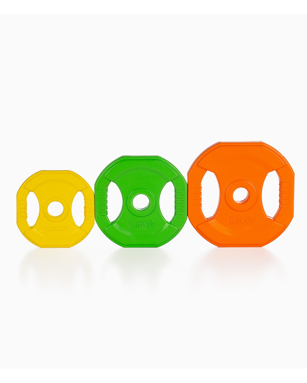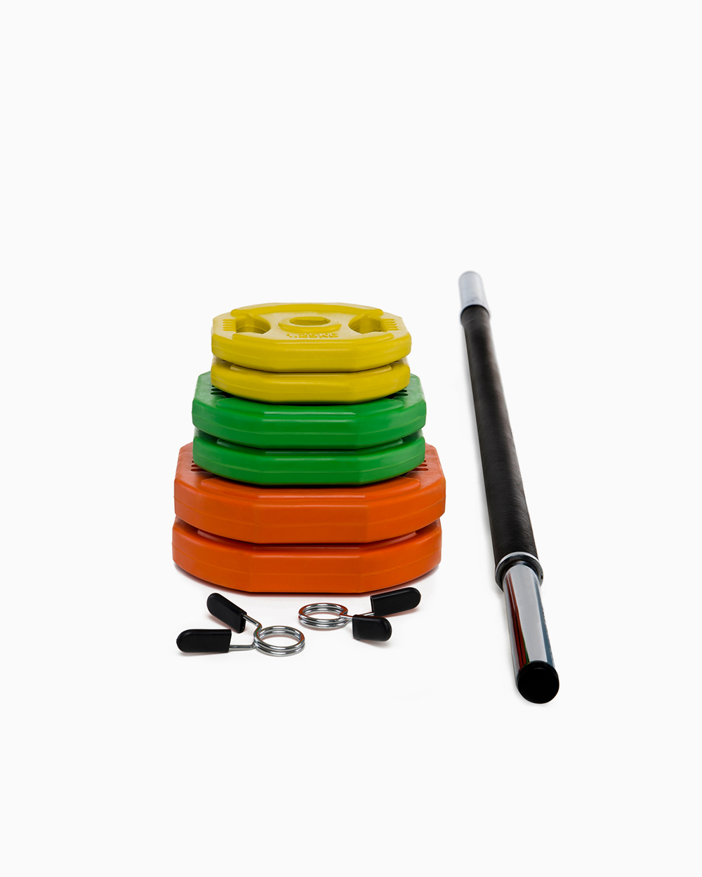 - Composé de: 1 barre + 2 Ressorts De Blocage + 6 disques: 2 x 1,25 Kg + 2 x 2,25 Kg + 2 x 5 Kg;