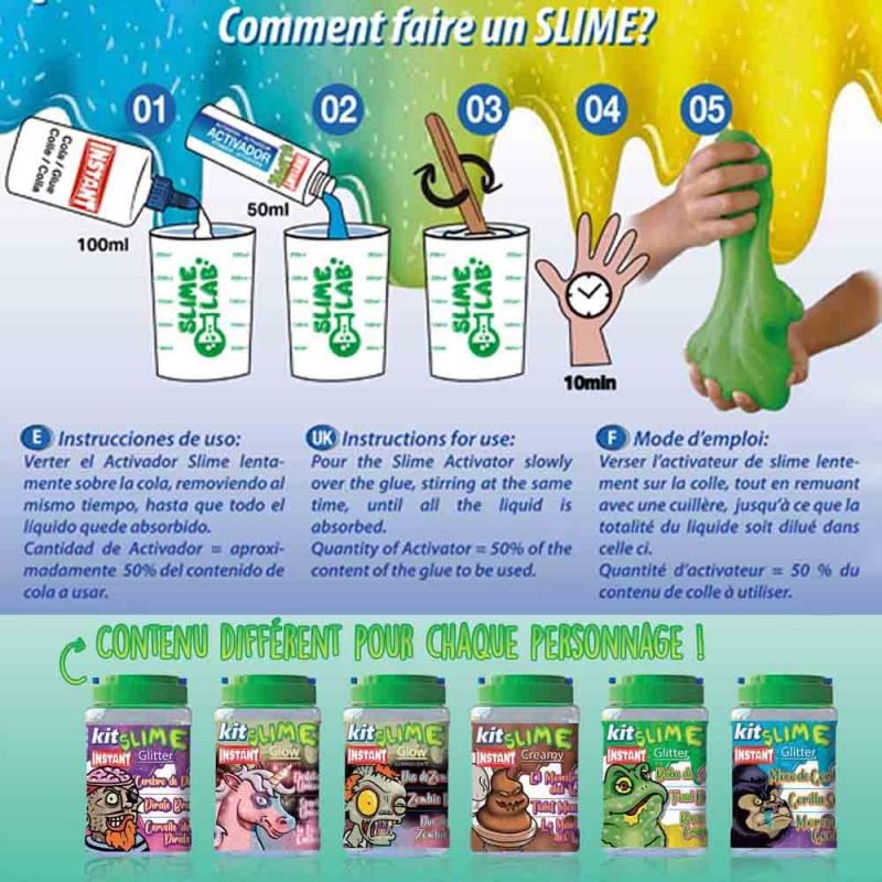 Ce KIT SLIME qui contient tout ce dont vous avez besoin pour réaliser la recette sans risque.