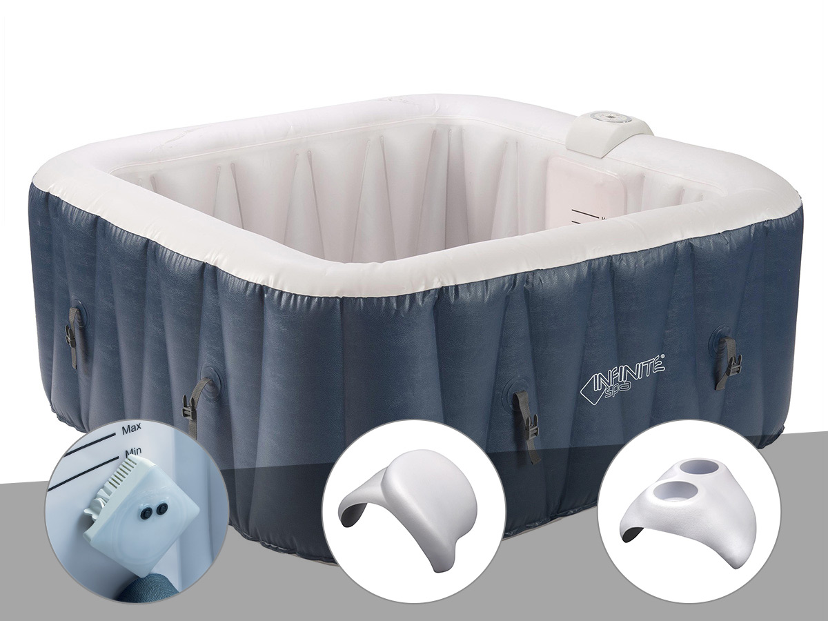 Kit spa gonflable Infinite Spa Champion carré Bulles 6 places + Projecteur + 2 appuie-têtes + Porte verre