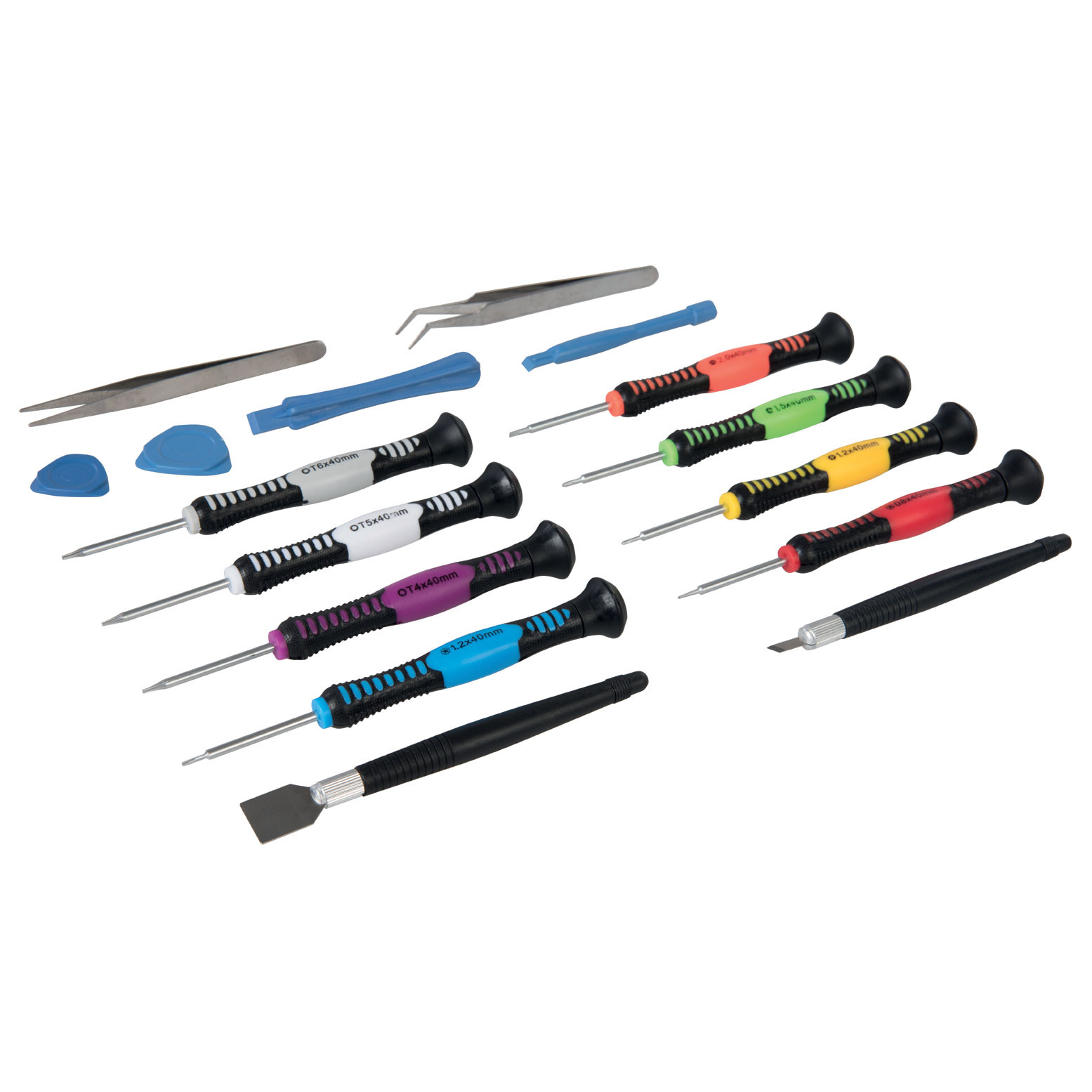 Ensemble d'outils de précision en acier avec manche en plastique confortable spécialement conçus pour ouvrir ordinateurs, téléphones portables et tablettes.