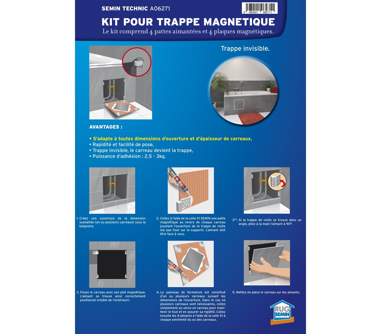 Libellé Kit trappe magnétique pour accès baignoire Semin - s'adapte à toute dimension de carrelage