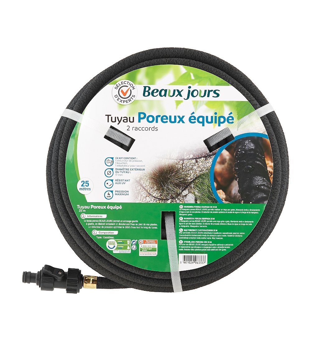 | Libellé | Kit tuyau d'arrosage poreux L.25m - Sélection d'Experts - Beaux Jours |