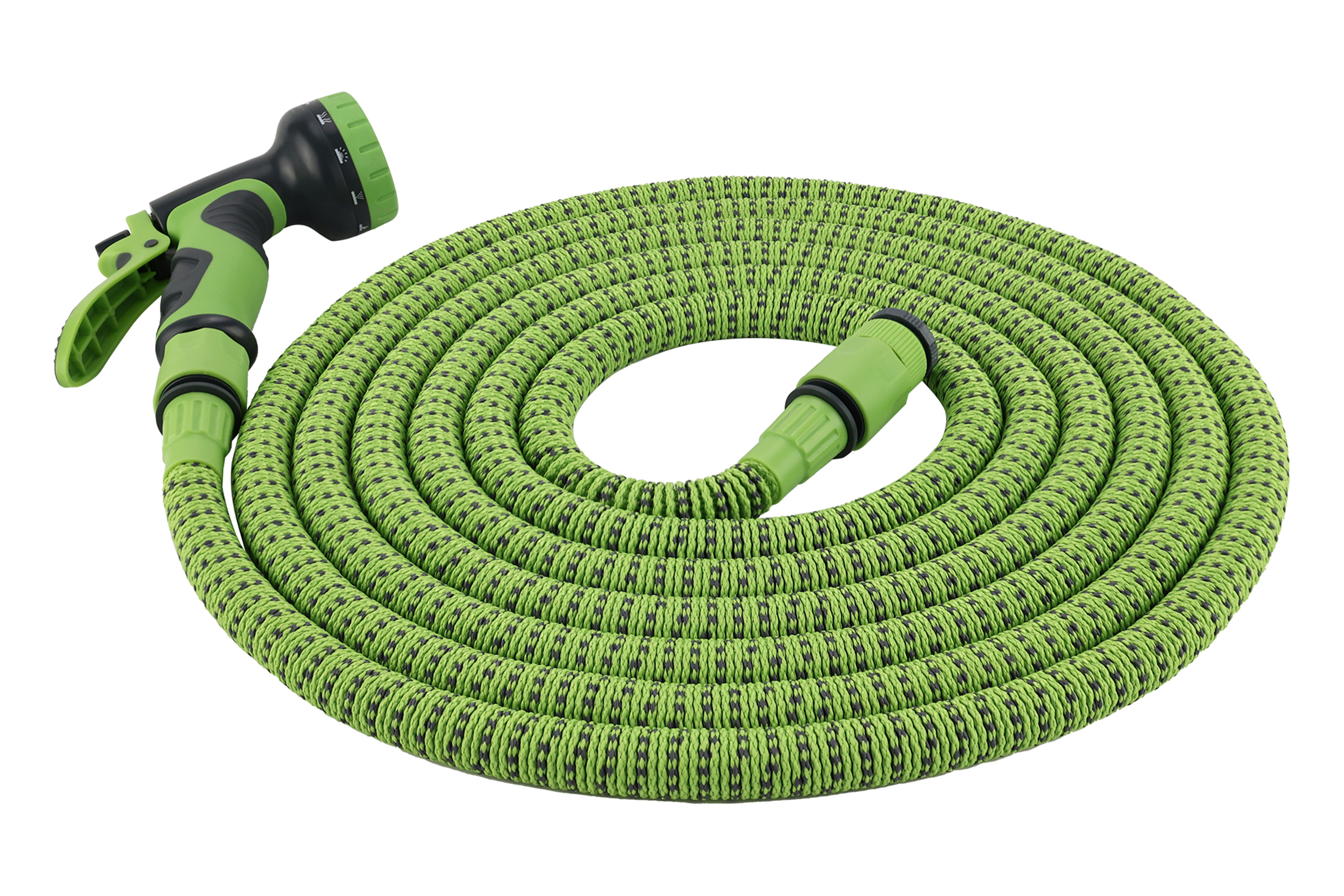 - Tuyau de qualité Premium qui s'étend jusqu'à 3 fois sa longueur pour atteindre sa taille maximale de 15m sous la pression de l'eau, puis se rétracte après usage pour un rangement facile