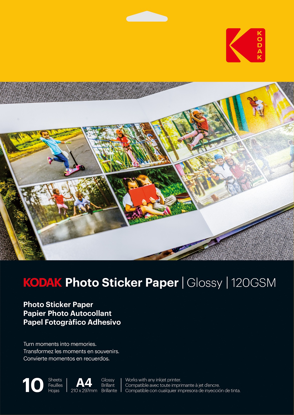 Libellé KODAK Photo Sticker Paper - Papier Photo Autocollant, Finition Brillante, Pack de 10 Feuilles, Format A4 (21x29,7cm), 120 gsm, Compatible avec Imprim