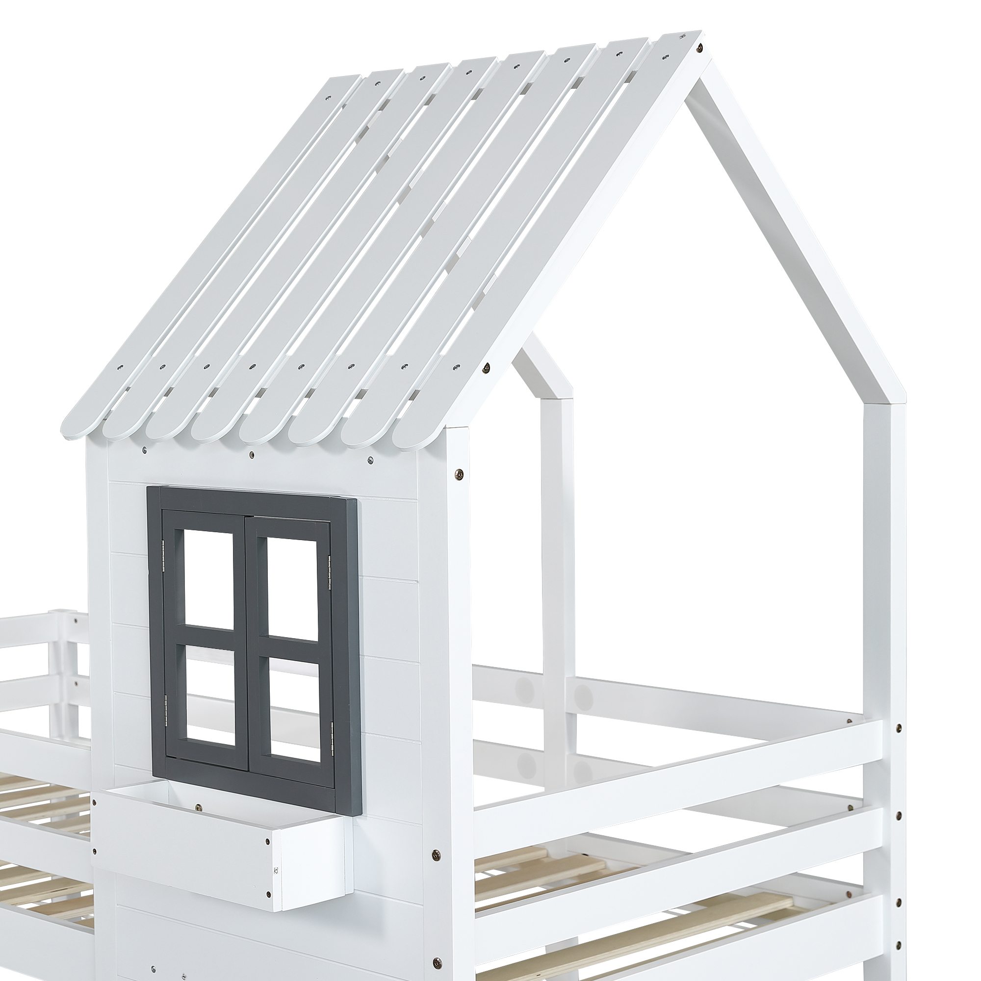 ✅Conception pratique d'un lit superposé : Les lits superposés prennent très peu de place, ce qui les rend idéaux pour les familles avec plusieurs enfants. Ils permettent non seulement d'économiser de l'espace, mais sont également très appréciés des enfants. Vous pouvez également vous passer du sommier inférieur et aménager l'espace sous le lit comme vous le souhaitez. ✅Forme exquise des fenêtres et du toit : Le cadre de lit comporte deux fenêtres grises ouvrables pour rendre le lit plus intéressant et une petite plate-forme de rangement devant les fenêtres pour les petits jouets. Vous pouvez le décorer selon les préférences de votre enfant. ✅Construction solide : Fabriqué à partir d'un cadre en pin et d'épais panneaux de fenêtre en MDF, ce lit superposé est solide et durable. Le cadre en forme de petite maison ajoute également de la stabilité à l'ensemble du lit, tout en étant esthétique. ✅Mesures de sécurité : La couchette supérieure est équipée de rails de protection contre les chutes et de grilles de fenêtre sur tous les côtés pour empêcher les enfants de rouler hors du lit pendant leur sommeil. L'escalier latéral à trois marches est équipé d'une main courante pour plus de sécurité lors de la montée des marches. ✅Facile à installer : Des instructions détaillées et des pièces complètes vous aideront lors du montage. Cet article est expédié en 3 colis et peut arriver à des dates différentes. Veuillez nous contacter si vous avez des questions.