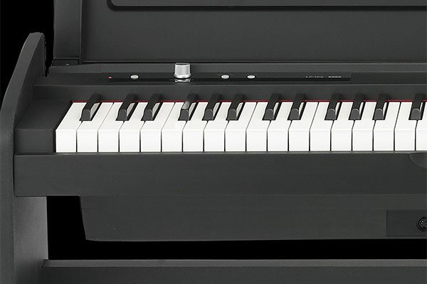 Piano numérique de 88 touches Natural Weighted Hammer Action (NH) Trois types de toucher Light, Normal et Heavy 120 voix de polyphonie en mono (60 en stéréo) 10 sons : 2 de pianos acoustiques, 2 de pianos électriques, 2 de clavecin , vibraphone, orgue à tuyaux et orgue électrique, cordes Transposition et accordage fin Réverbe et chorus intégrés (profondeur fixe pour chaque effet) Contrôles de volume, Piano Play (pour choisir les démos) et Sound (pour choisir le type de son) 10 démos 2 sorties casques mini-jack Sortie MIDI 2 HP ovales, bi-amplification de 11W Couvercle intégré Triple pédale incluse Support inclus Dimensions : 1365 x 274 x 781mm Poids : 23.3kg