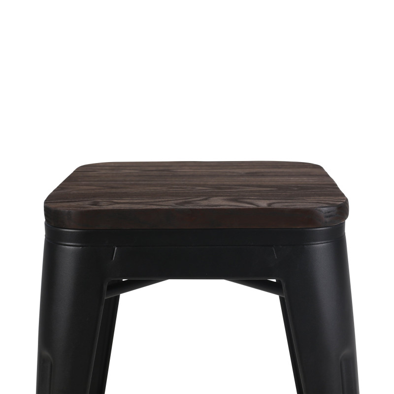 KOSMI - Lot de 4 tabourets en métal noir mat style industriel et assise en bois foncé - Sans dossier - Hauteur 46 cm
