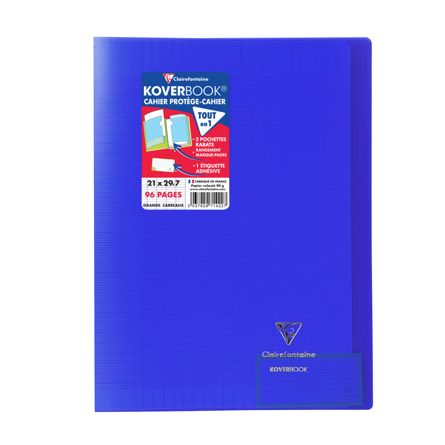 | Libellé | Koverbook Cahier Piqure Avec Rabats 210X297 96 Pages Seyes Papier P.E.F.C. 90G Couverture Polypro.Translucide Bleu Marine Clairefontaine |