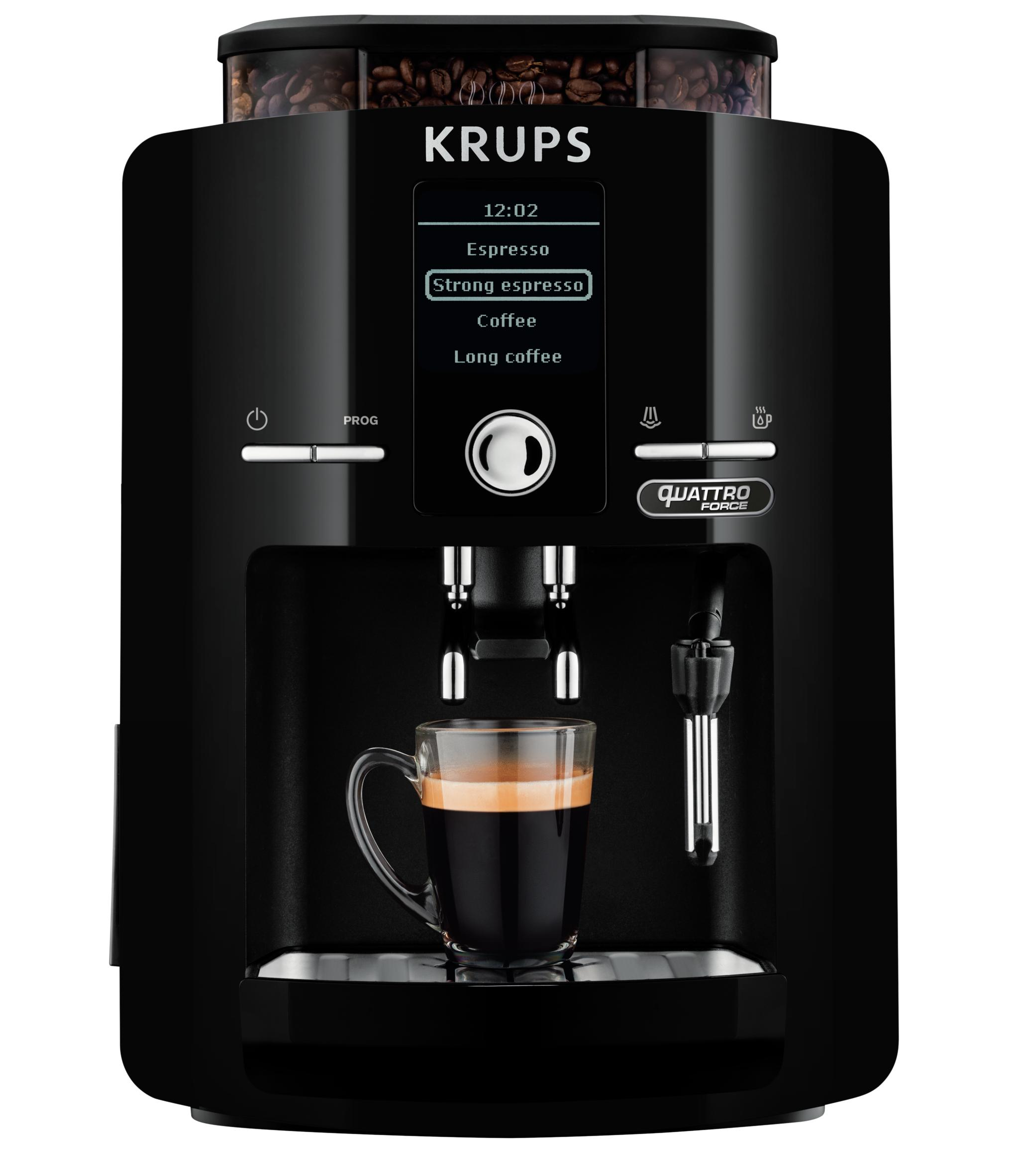 Krups EA82F0. Type de produit: Machine à expresso, Type de cafetière: Entièrement automatique, Capacité du réservoir d'eau: 1,7 L, Type d'entrée à café: Café en grains, Café moulu, Broyeur intégré. Type d'écran: LCD. Puissance: 1450 W. Couleur du produit: Noir