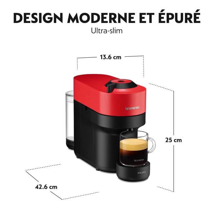 | Libellé | KRUPS NESPRESSO YY4888FD Vertuo Pop Rouge Machine a café capsules, Cafetiere compacte, 4 tailles de tasses, Expresso, Bluetooth |