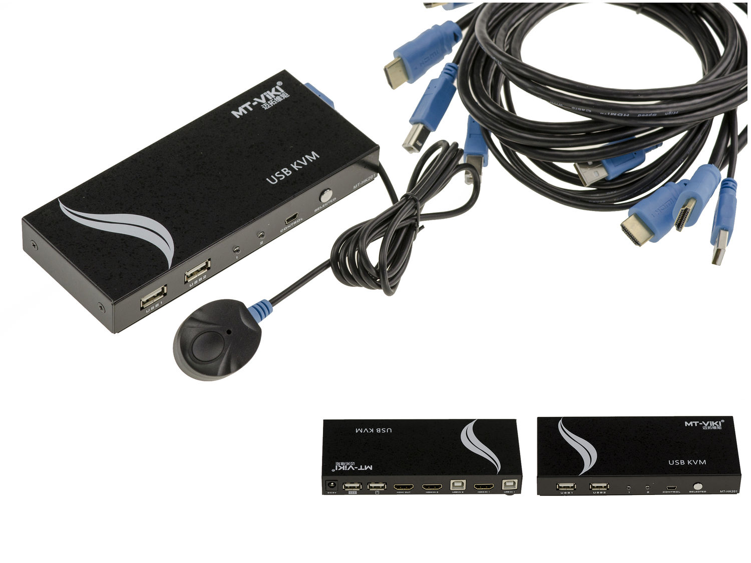 KVM Switch Automatique Souris Clavier Ecran 2 PC - HDMI USB - Controle à distance, auto alimenté, avec Co