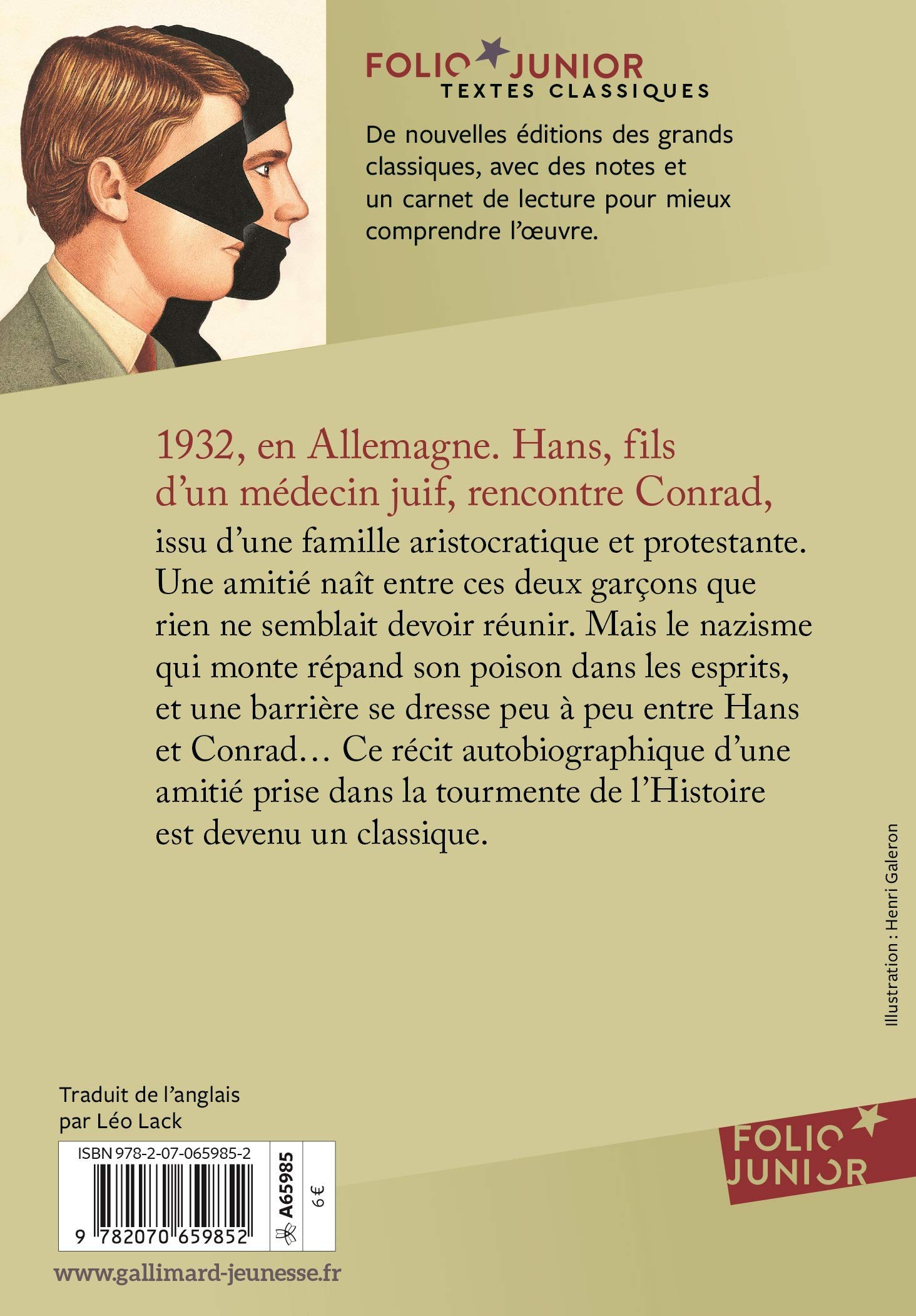1932, en Allemagne. Hans, fils d'un médecin juif, rencontre Conrad, issu d'une famille aristocratique et protestante. Une amitié naît entre ces deux garçons que rien ne semblait devoir réunir. Mais le nazisme qui monte répand son poison dans les esprits, et une barrière se dresse peu à peu entre Hans et Conrad...