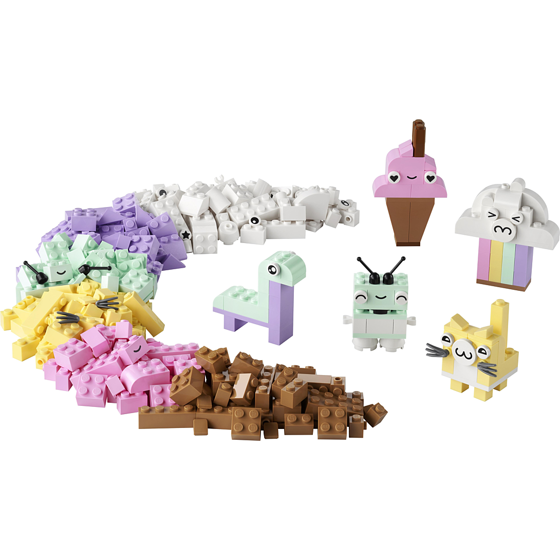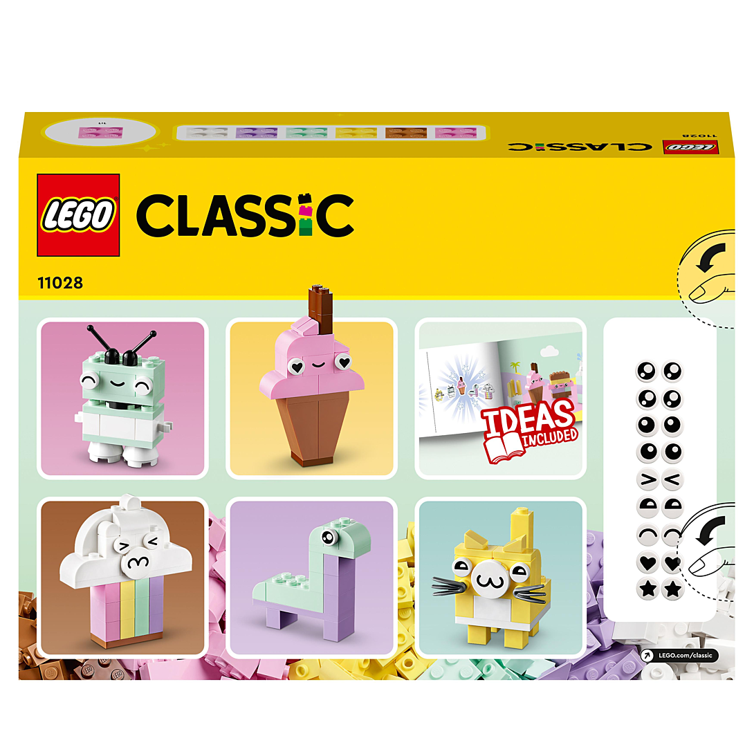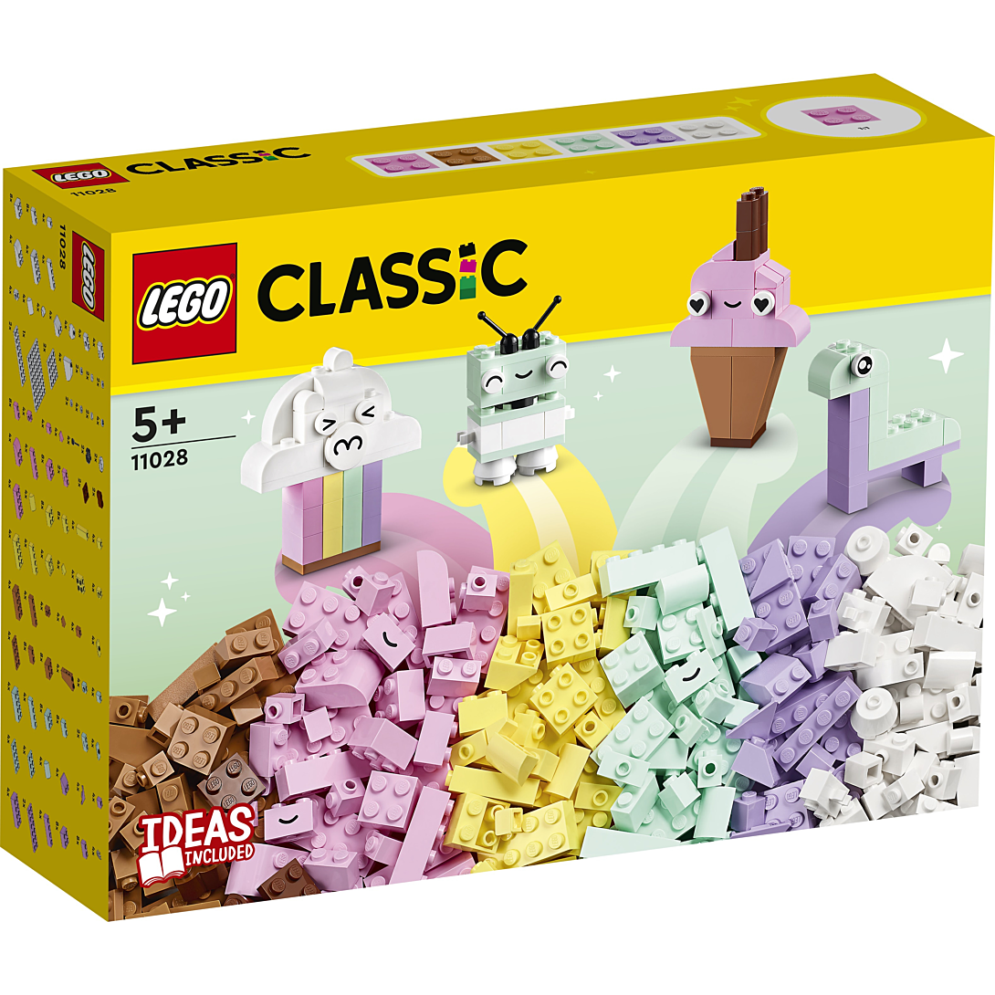 | La boîte contient | • Briques pastel pour enfants créatifs – Encouragez les enfants de 5 ans et plus à explorer les couleurs et leur créativité avec L’amusement créatif pastel LEGO® Classic (11028), pour une infinité de possibilités de créations dans des tons pastel • Des couleurs fascinantes – Ce set de construction polyvalent contient 333 briques de différentes tailles dans 6 couleurs pastel. 18 briques sont ornées d’yeux expressifs que les enfants peuvent utiliser pour donner vie à leurs modèles • De nombreuses options de jeu – Avec ce set, les enfants peuvent créer en toute liberté ou s’inspirer des instructions de montage papier pour construire un nuage, une crème glacée, un dinosaure, un chat et un robot • Un cadeau pour les enfants – Ce set à offrir pour un anniversaire, les fêtes ou toute autre occasion est source de jeux infinis et développe les compétences essentielles des enfants de 5 ans et plus • Conçu pour les jeunes constructeurs – Le set inclut des instructions illustrées simples et ludiques. L’appli LEGO® Builder propose également la version numérique des instructions de montage • Des briques qui permettent de développer des compétences – Les sets LEGO® Classic placent le jeu libre et l’expression personnelle entre les mains des constructeurs en herbe • Qualité garantie – Les éléments LEGO® sont conformes aux normes de qualité industrielles les plus strictes. Ils sont compatibles entre eux et s’assemblent toujours facilement • Sécurité garantie – Les briques et les pièces LEGO® Classic sont soumises à des tests de chute, de chaleur, d’écrasement et de torsion, puis analysées afin de s’assurer qu’elles satisfont aux normes de sécurité les plus rigoureuses |