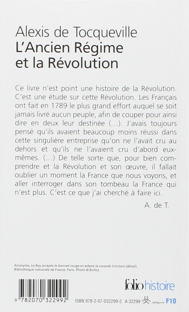Ce livre n'est point une histoire de la Révolution. C'est une étude sur cette Révolution. Les Français ont fait en 1789 le plus grand effort auquel se soit jamais livré aucun peuple, afin de couper pour ainsi dire en deux leur destinée (...). J'avais toujours pensé qu'ils avaient beaucoup moins réussi dans cette singulière entreprise qu'on ne l'avait cru au dehors et qu'ils ne l'avaient cru d'abord eux-mêmes. (...) De telle sorte que, pour bien comprendre et la Révolution et son œuvre, il fallait oublier un moment la France que nous voyons, et aller interroger dans son tombeau la France qui n'est plus. C'est ce que j'ai cherché à faire ici.