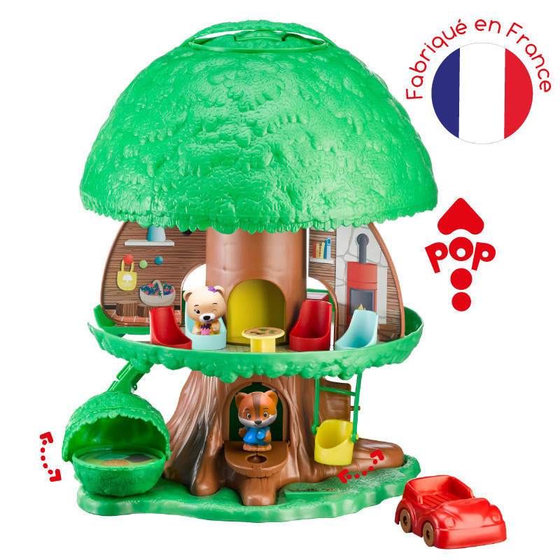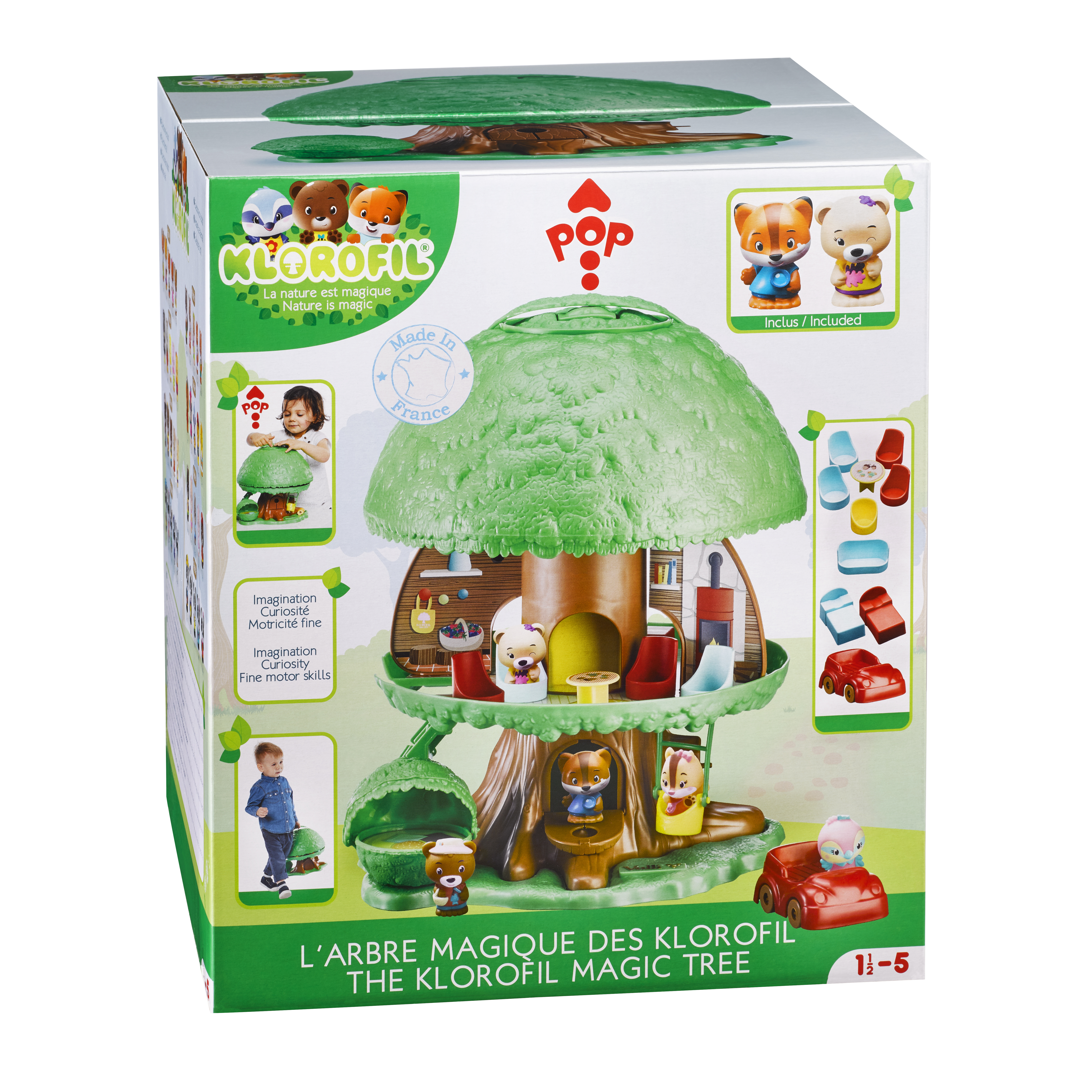 Le célèbre arbre magique revisité par les Klorofil de la forêt magique! Nouveaux personnages, nouveaux décors et coloris, pour se raconter toujours plus d'histoires. Les nombreuses activités incontournables inchangées: l'arbre qui s'ouvre et se referme... "Pop!" Avec de nombreux accessoires: 5 chaises, 2 lits, une banquette, une table et une balançoire. Avec poignée de transport. Comprend 5 personnages des familles Klorofil.