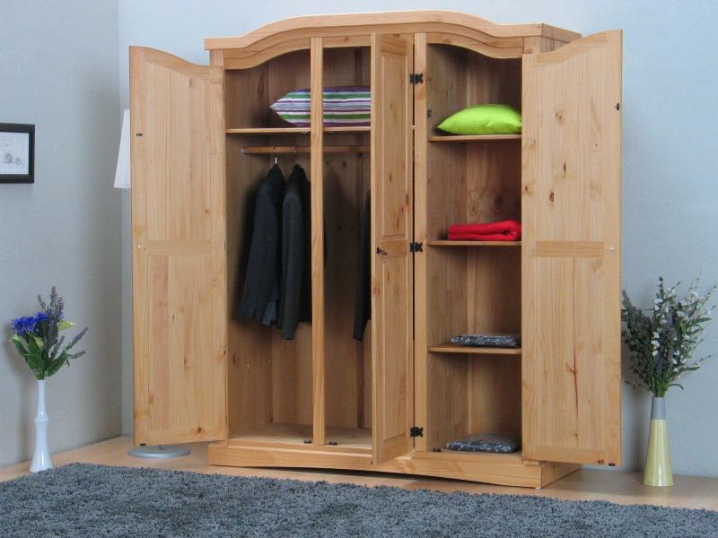 Armoire New Mexico 3 portes largeur 152 cm, hauteur 193 cm lessive/cire est une armoire de couleur teintée, qui apporte à la fois style et fonctionnalité à votre maison. Belle armoire rustique à 3 portes de style antique. Le meuble est fabriqué en bois de pin massif traité à la cire de lessive en style colonial, où la structure du bois est visible à travers la couleur. Derrière les 2 portes vous trouverez 1 barre de suspension et 1 étagère à chapeaux. Derrière la porte de droite, vous trouverez 1 étagère fixe et 2 étagères mobiles. Ce produit est créé avec un souci du détail, ce qui garantit à la fois un attrait esthétique et une grande durabilité. Il est conçu dans un souci à la fois de fonctionnalité et de style, ce qui en fait le choix parfait pour n’importe quelle pièce de votre maison. Les matériaux utilisés sont de haute qualité, ce qui confère au produit une longue durée de vie et lui permet de résister à une utilisation quotidienne. Que ce soit pour le rangement ou comme ajout décoratif, ce produit rehaussera votre décor et apportera plus de confort et d'élégance à votre maison.