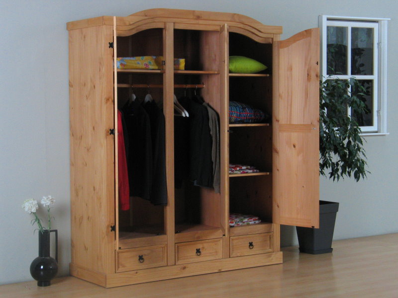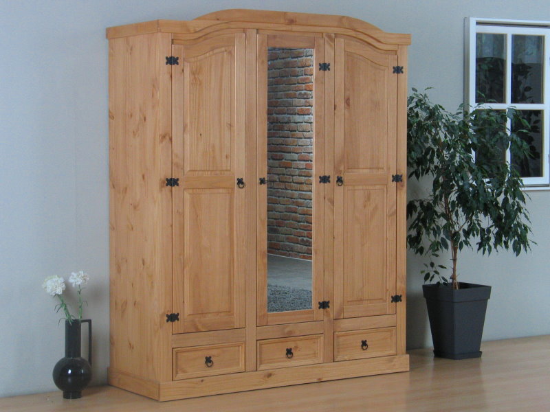 Armoire Nouveau Mexique 3 portes avec 1 porte miroir, 2 portes de remplissage et 3 tiroirs en lessive, cire est une armoire de couleur Naturelle, qui apporte à la fois style et fonctionnalité à votre intérieur. Belle armoire rustique à 3 portes avec 1 porte miroir de style antique. Le meuble est fabriqué en pin massif traité avec de la lessive/cire, où la structure du bois est visible à travers la couleur de la lessive. Derrière les 2 portes vous trouverez 1 barre de suspension et 1 étagère à chapeaux. Derrière la porte de droite, vous trouverez 1 étagère fixe et 2 étagères mobiles. Ce produit est créé avec un souci du détail, ce qui garantit à la fois un attrait esthétique et une grande durabilité. Il est conçu dans un souci à la fois de fonctionnalité et de style, ce qui en fait le choix parfait pour n’importe quelle pièce de votre maison. Les matériaux utilisés sont de haute qualité, ce qui confère au produit une longue durée de vie et lui permet de résister à une utilisation quotidienne. Que ce soit pour le rangement ou comme ajout décoratif, ce produit rehaussera votre décor et apportera plus de confort et d'élégance à votre maison.