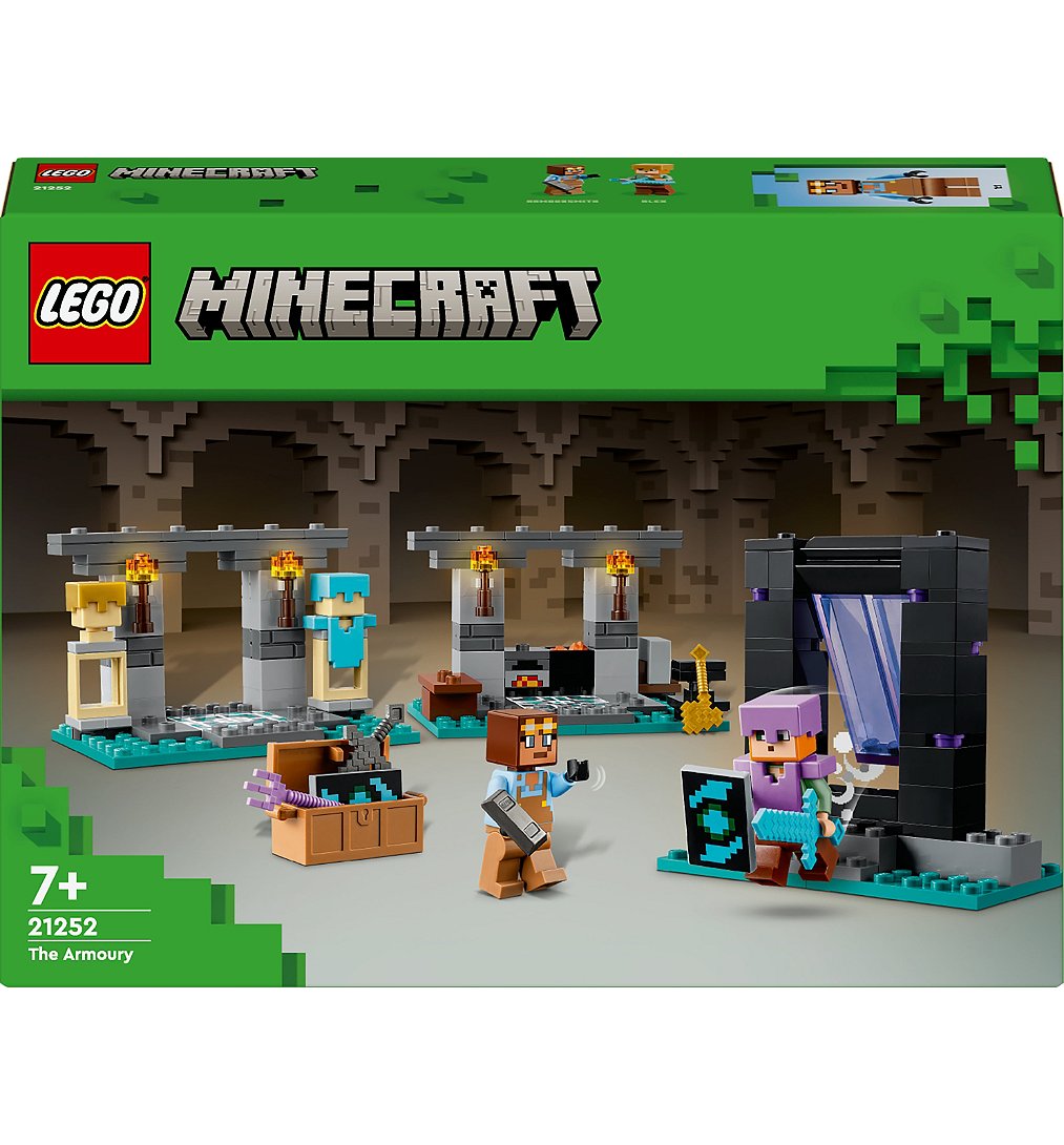 Les joueurs de Minecraft âgés de 7 ans et plus adoreront utiliser les armes et les fonctionnalités de Minecraft avec L’Armurerie (21252). Ce kit de construction LEGO Minecraft est une excellente idée de cadeau pour les enfants, offrant aux joueurs la passerelle parfaite vers des aventures créatives dans Minecraft. Ce jouet de jeu de construction pour les enfants comprend 2 figurines familières : l'héroïne d'action Minecraft Alex, avec son bouclier et son épée en diamant, et le travailleur industrieux de l'Armurerie. Il y a 3 environnements à explorer : la zone de travail, avec une enclume, un four, une meule et un chaudron rempli de lave ; la salle d'exposition d'armures, avec son coffre contenant une hache en or, un trident enchanté, une épée en Netherite, un bouclier et d'autres ressources de Minecraft ; et le portail de l'Enfer, avec son entrée à porte oscillante pour la prochaine aventure des joueurs. Ce jouet d'aventure Minecraft est également un ensemble d'extension de jeu de rôle, qui se combine facilement avec d'autres ensembles LEGO Minecraft, en particulier le Piège du portail de l'Enfer (21255), vendu séparément.