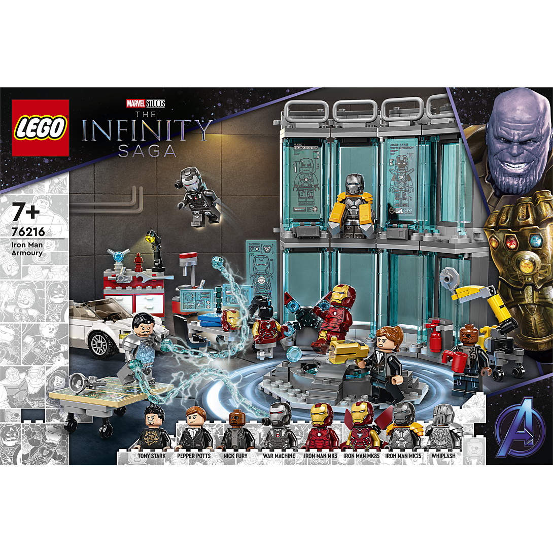 | La boîte contient | • Le QG d’Iron Man – Rendez hommage à La saga de l’infini de Marvel Studios avec le set L’armurerie d’Iron Man LEGO® Marvel (76216), riche en détails et fonctions authentiques, et incluant des personnages réalistes • Personnages Marvel – Inclut 8 minifigurines : les armures MK3, MK25 et MK85 d’Iron Man, Tony Stark, Pepper Potts, Nick Fury, War Machine et Whiplash • Des détails réalistes – Les éléments familiers évoquant les films incluent une voiture de sport avec une carte de Stark Expo, un bras robotisé assistant, un espace de travail avec des outils et de nombreux accessoires authentiques • Une idée de cadeau pour toute occasion – Ce set amusant place l’action sans fin d’Iron Man entre les mains des jeunes super-héros de 7 ans et plus • Facilement transformable – Le set mesure plus de 17 cm de haut, 13 cm de large et 6 cm de profondeur et se compose de différentes sections que les enfants peuvent réorganiser sans fin pour mettre en scène leurs propres scénarios • Une expérience de construction immersive – L’appli gratuite Instructions de montage LEGO® permet aux utilisateurs de visualiser, zoomer et faire pivoter le modèle pendant la construction • Enrichissez le jeu des super-héros – La large gamme de jouets de construction LEGO® Marvel propose aux enfants des sets d’exception et des possibilités de construction et de jeu sans fin qui stimulent l’imagination • Qualité garantie – Les éléments LEGO® sont conformes aux normes de qualité industrielles les plus strictes. Ils sont compatibles entre eux et s’assemblent et se séparent facilement • Sécurité assurée – Les éléments LEGO® sont soumis à des tests de chute, de chaleur, d’écrasement et de torsion, puis analysés afin de s’assurer qu’ils satisfont aux normes de sécurité les plus rigoureuses |