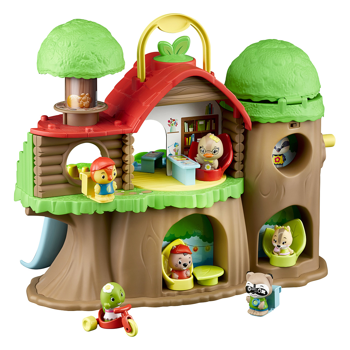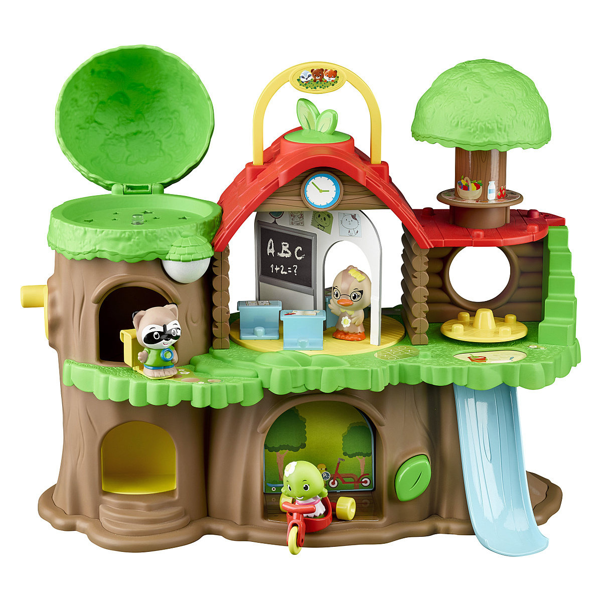 C’est l’heure de la rentrée à l’école des Klorofil ! Callie, la maitresse est prête à accueillir ses élèves, Hugo et Lola. Cette école est remplie de surprises et d’activités : La manivelle pour actionner l’ascenseur, la salle de classe laisse place à une bibliothèque en actionnant la feuille sur le toit, « Pop ! » un espace gouter apparait sous le buisson, un tourniquet, une trappe s’ouvre pour glisser dans le toboggan, un bouton pour éjecter le tricycle du garage à et l’espace repos s’illumine en plaçant un personnage sur le plot. Avec poignée de transport. Inclus : 1 tricycle, 3 fauteuils, 1 table, 2 pupitres, 3 personnages et 2 sacs à dos.