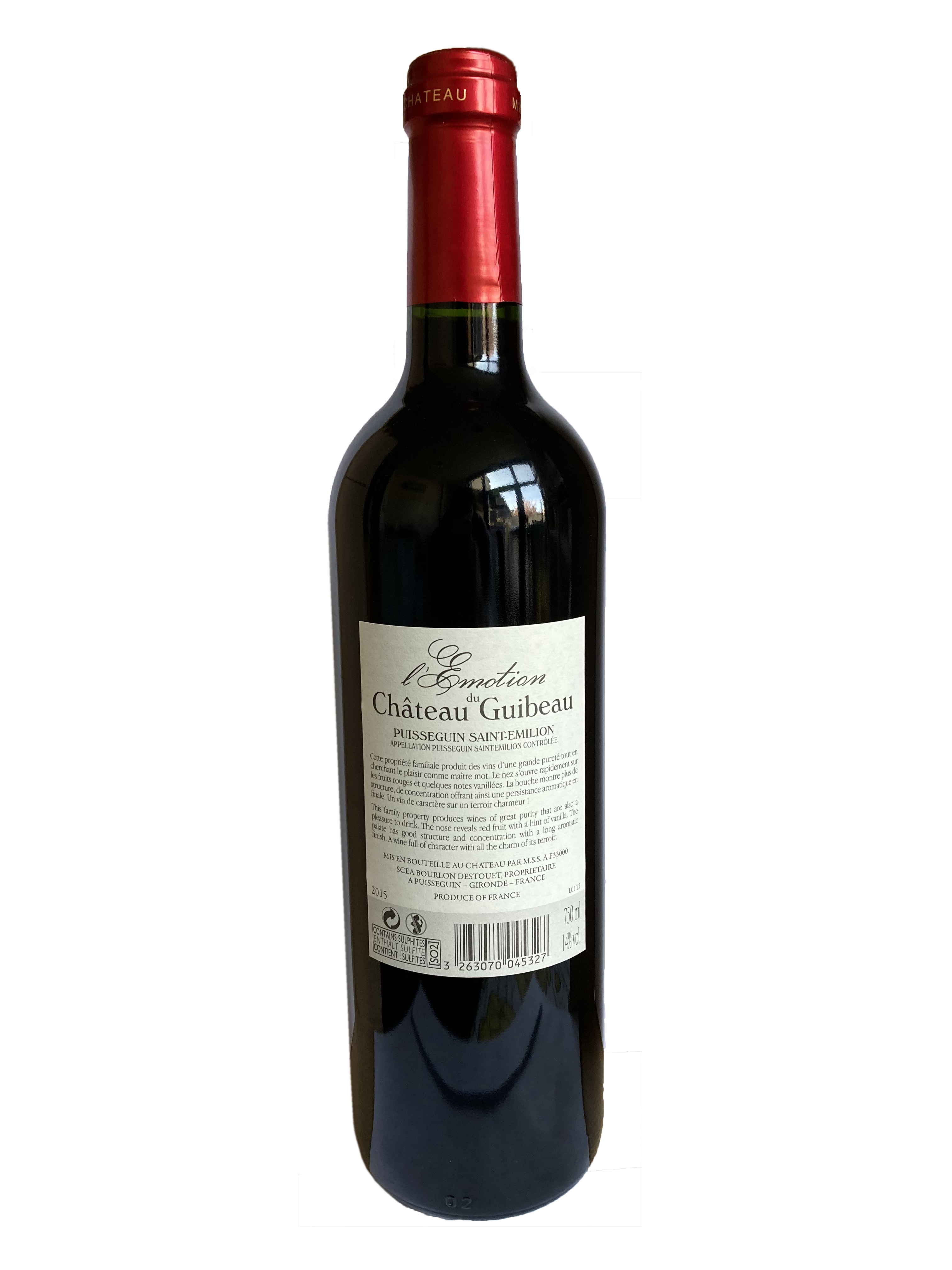 | Libellé | L'Emotion du Château Guibeau BIO, 2015 - Puisseguin-Saint-Emilion AOP - Rouge - 75 cl |