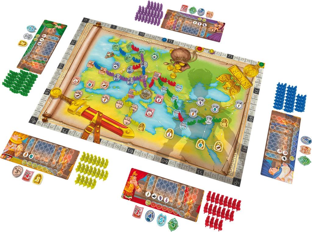 à partir de 10 ans 30 min à 1 heure 2 à 5 joueur(s) Un empire d'irréductibles Romains !Retrouvez l'univers d'Astérix et Obélix dans un jeu pour petits et grands ! S'il y a un village d'irréductibles Gaulois, tout le reste de l'Europe est à votre portée. Vous incarnez des soldats de la garde rapprochée de César. Votre mission : agrandir l'Empire Romain !Pour cela, rien de plus simple : reliez entre elles des villes, grâce aux routes dont les Romains étaient friands. Toute ville que vous reliez ainsi à Rome vous rapporte des points, à travers des jetons Villes et Richesses. Une fois que l'Empire Romain a bâti des routes jusqu'à tous les centres urbains du continent, la partie s'achève et le soldat avec le plus de points l'emporte !L'Empire de César est un jeu simple mais pas simpliste ! Si les enfants peuvent y jouer avec des adultes, la voie vers la victoire passe par de la planification, un brin de stratégie et d'adaptabilité. Alors même entre Romains, préparez-vous à une compétition acharnée !Contenu : 1 Plateau de jeu double face, 5 Plateaux Joueur,125 Routes,5 jetons Score,40 jetons Ville,40 jetons Richesses,1 Livret de règles.
