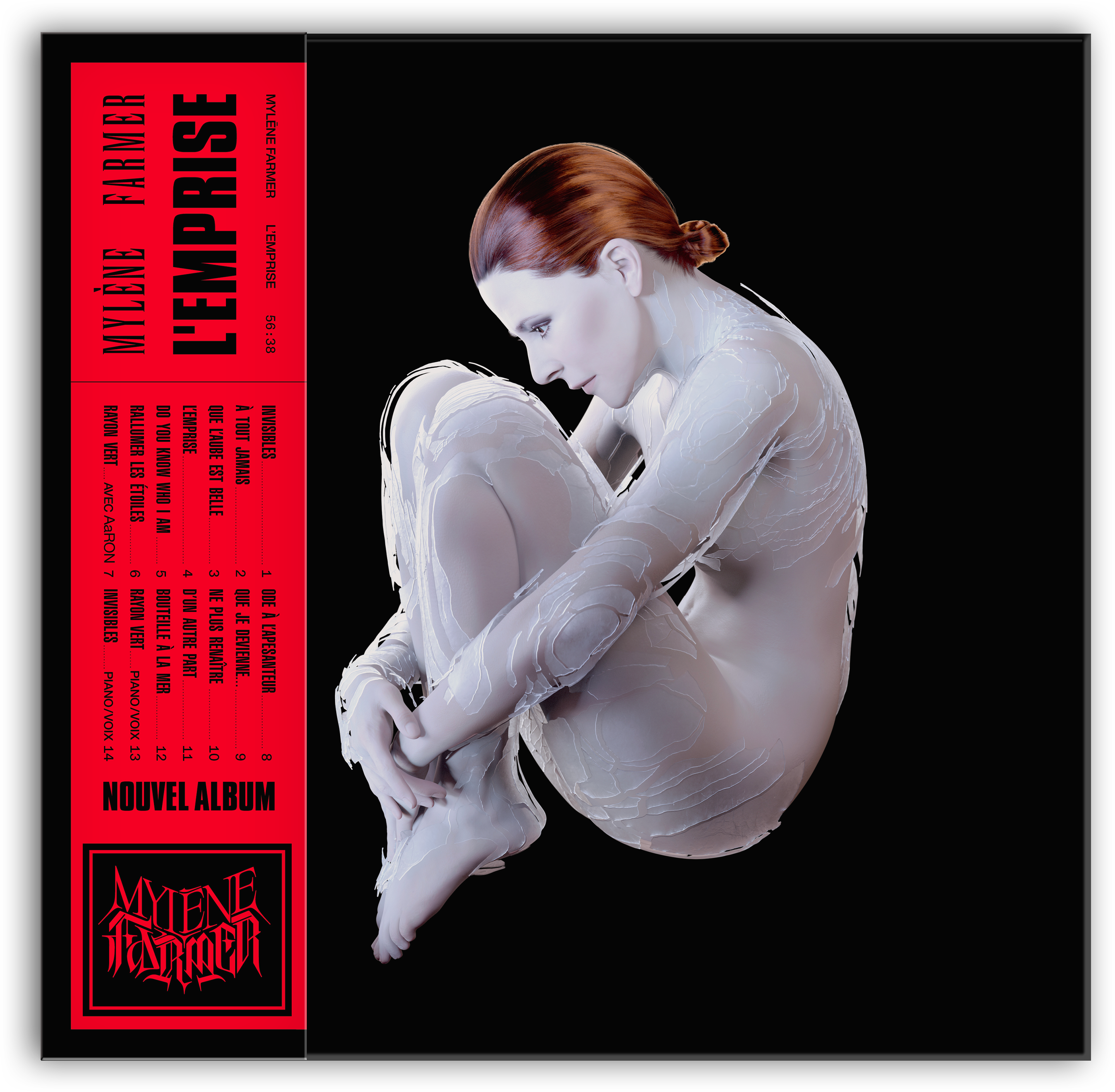 « L'EMPRISE », le nouvel album de Mylène Farmer, sorti le 25 novembre 2022, est disponible en version digitale et aux formats physiques CD (standard, coversleeve limité, collector grand format) et vinyle (Double vinyle standard). L'album comporte 14 enregistrements dont « À tout jamais », le premier single composé et réalisé par Woodkid, accompagné d'un clip signé Tobias Gremmler.