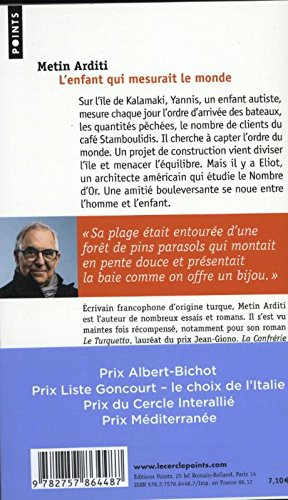Sur l’île de Kalamaki, Yannis, un enfant autiste, mesure chaque jour l’ordre d’arrivée des bateaux, les quantités pêchées, le nombre de clients du café Stamboulidis. Il cherche à capter l'ordre du monde. Un projet de construction vient diviser l’île et menacer l’équilibre. Mais il y a Eliot, un architecte américain qui étudie le Nombre d’Or. Une amitié bouleversante se noue entre l’homme et l’enfant.