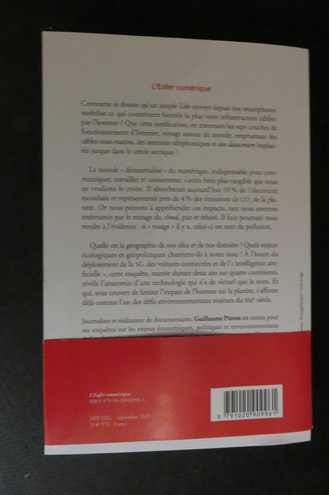 Quelle est la géographie de nos clics et de nos données ? Quels enjeux écologiques et géopolitiques charrient-ils à notre insu ? À l'heure du déploiement de la 5G, des voitures connectées et de l'« intelligence artificielle », cette enquête, menée durant deux ans sur quatre continents, révèle l'anatomie d'une technologie qui n'a de virtuel que le nom. Et qui, sous couvert de limiter l'impact de l'homme sur la planète, s'affirme déjà comme l'un des défis environnementaux majeurs du XXIe siècle.