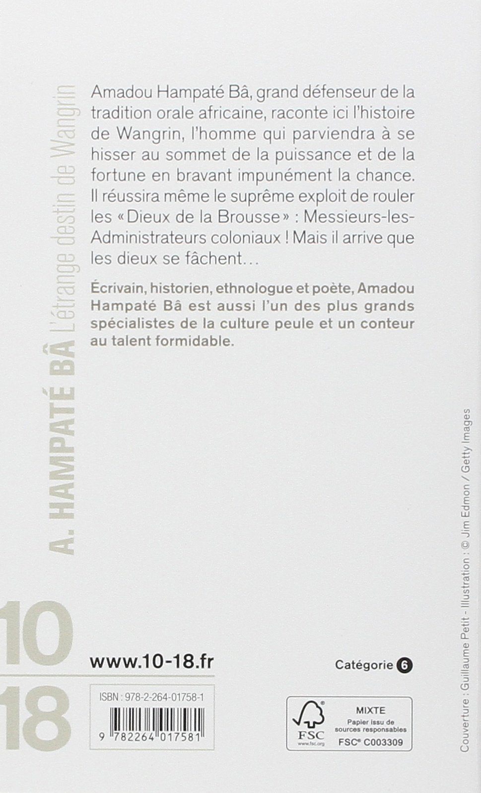 Amadou Hampaté Bâ, grand défenseur de la tradition orale africaine, raconte ici l'histoire de Wangrin, l'homme qui parviendra à se hisser au sommet de la puissance et de la fortune en bravant impunément la chance. Il réussira même le suprême exploit de rouler les "Dieux de la Brousse" : Messieurs-les-Administrateurs coloniaux ! Mais il arrive que les dieux se fâchent...