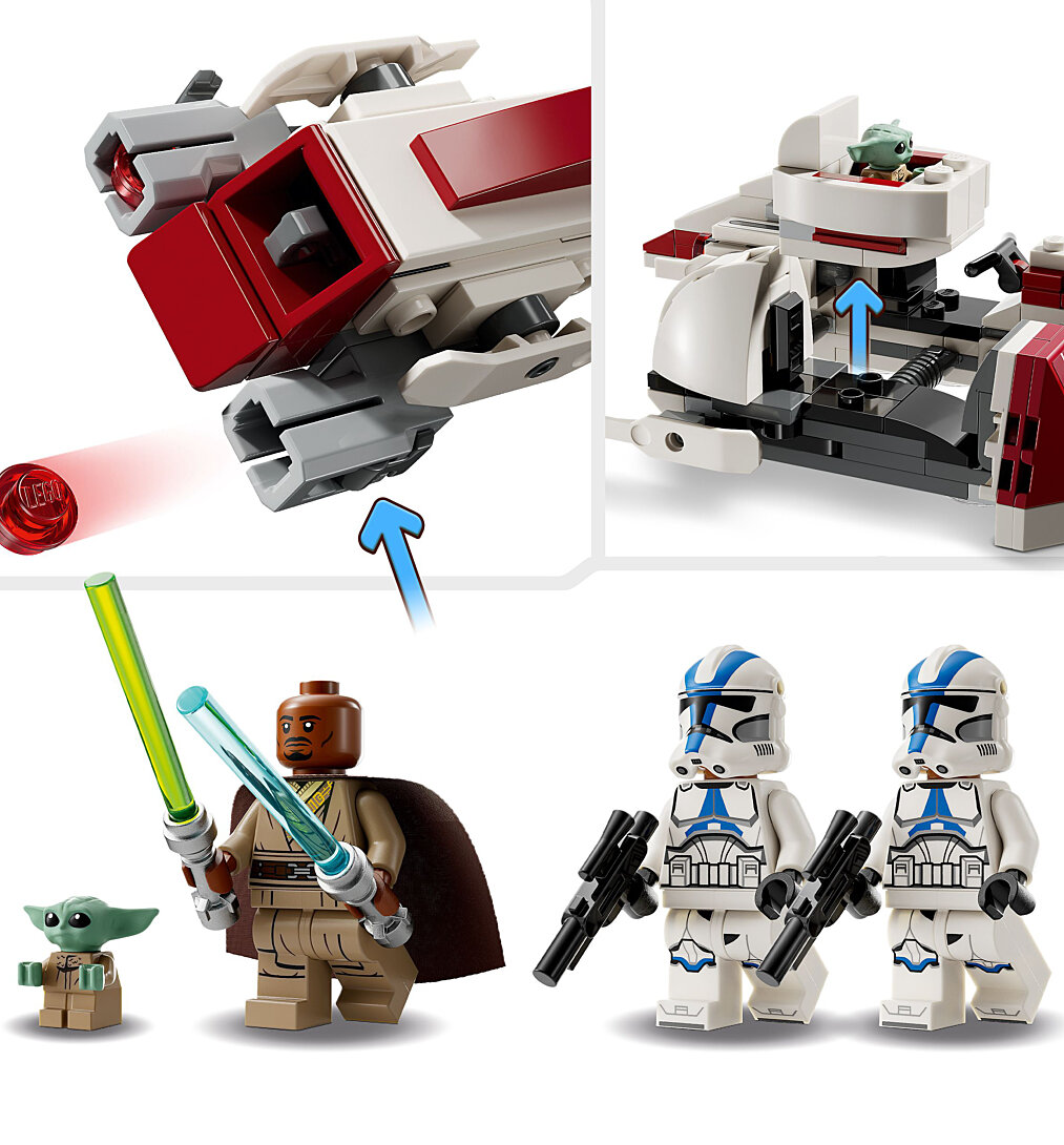 Revivez l’évasion en Speeder BARC du flashback de la saison 3 de Star Wars: The Mandalorian avec ce set LEGO Star Wars (75378) unique. Le speeder avec side-car en briques LEGO est une belle idée de cadeau pour les enfants, les fans et les collectionneurs d’objets Star Wars dès 8 ans. Il est doté d’un cockpit pour une minifigurine et de 2 fusils à tenons, et la nacelle de Grogu peut être clipsée sur le side-car détachable. Ce set de construction inclut également un petit décor et 3 minifigurines LEGO (Kelleran Beq muni de sabres laser bleu et vert et 2 Clone Troopers de la 501ème légion avec des blasters) ainsi qu’une figurine LEGO de Grogu (surnommé « Bébé Yoda » par les fans), pour un jeu débordant d’action. Ce jouet inspirant des aventures haletantes inclut des instructions étape par étape. Les enfants peuvent également télécharger l’application LEGO Builder proposant des outils de visualisation numérique zoom et rotation qui enrichissent l’expérience créative.